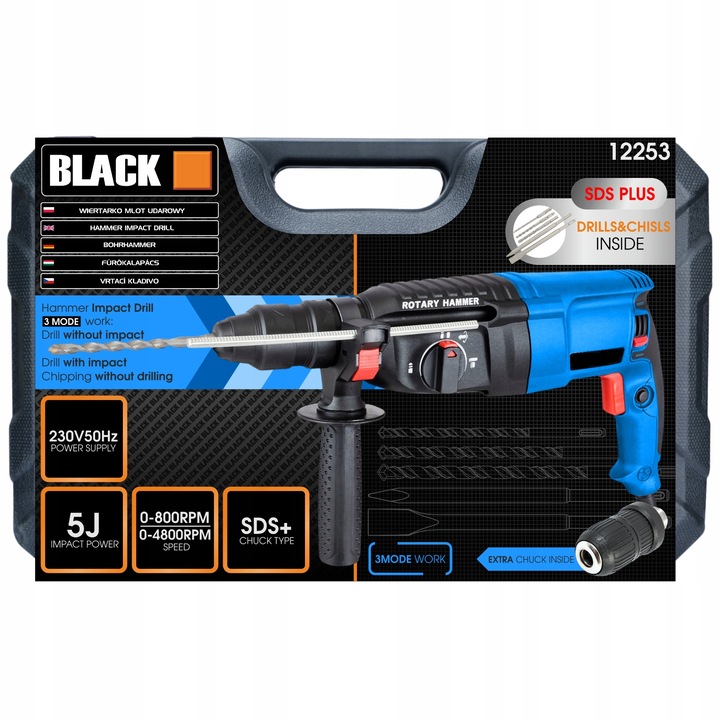 W ZESTAWIE ZNAJDUJE SIĘ GŁOWICA SDS+ ORAZ GŁOWICA SAMOZACISKOWA
