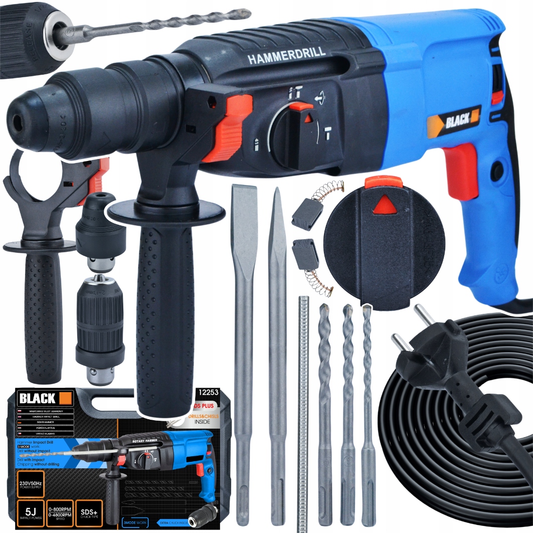 Młotowiertarka udarowa posiada wydajny silnik o mocy 800W, który pozwala stosować urządzenie do najtrudniejszych prac.