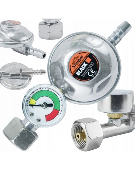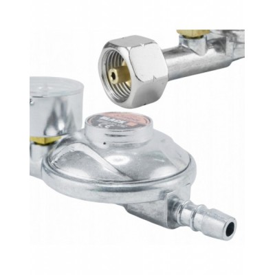 Produkt wyposażony jest w manometr, który wskazuje aktualne ciśnienie w butli. Manometr ten jest szczególnie przydatny do monitorowania poziomu gazu - informuje głównie o niskim poziomie gazu, co pozwala na szybkie podjęcie odpowiednich działań. Dodatkowym atutem jest zawór bezpieczeństwa, który uaktywnia się w przypadku nadmiernego zużycia gazu przez urządzenie lub przerwania przewodu, zapewniając maksymalne bezpieczeństwo użytkowania.