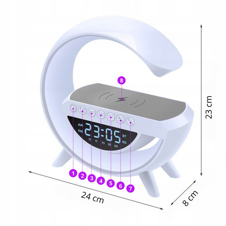 Wyposażona jest w cyfrowy zegar z funkcją budzika, co czyni ją praktycznym narzędziem do zarządzania czasem zarówno w ciągu dnia, jak i w nocy.