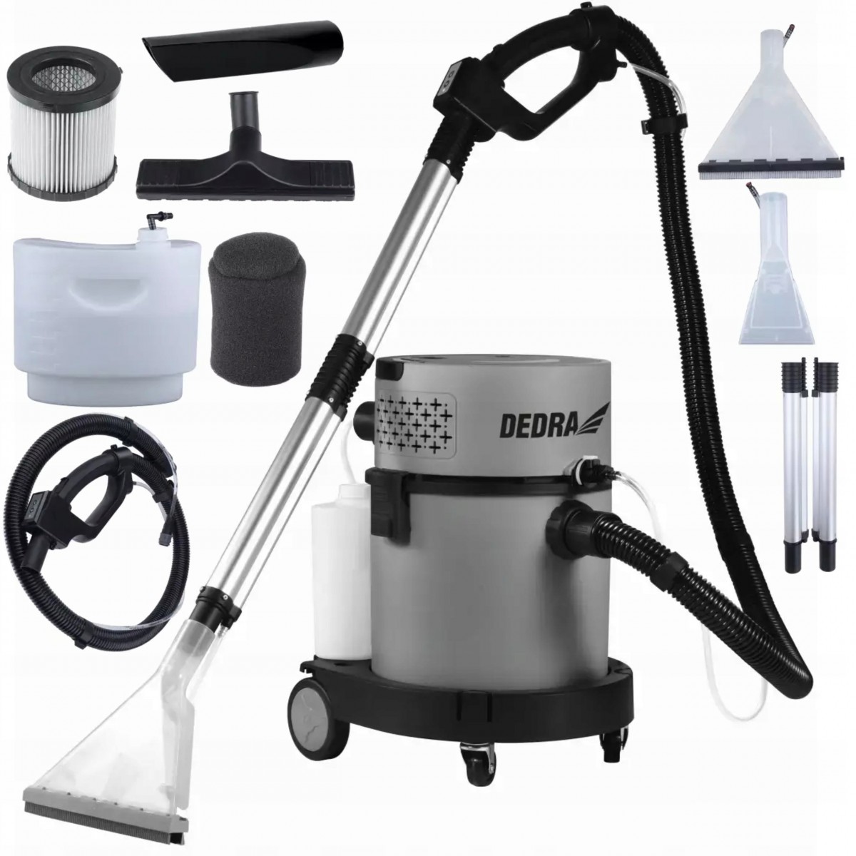 Odkurzacz piorący DEDRA DED6605 to prawdziwy multizadaniowiec w dziedzinie sprzątania. Dzięki czterem trybom pracy (odkurzanie na sucho, odkurzanie na mokro, pranie metodą ekstrakcji oraz funkcja dmuchawy) z łatwością poradzi sobie z każdym rodzajem zabrudzeń, docierając nawet do trudno dostępnych miejsc.