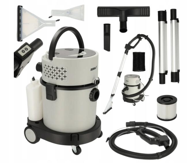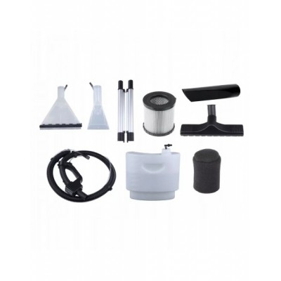 ✔️ Bogaty zestaw akcesoriów, w tym szczotki do prania dywanów i tapicerki, przedłużki, dysza szczelinowa oraz filtry.