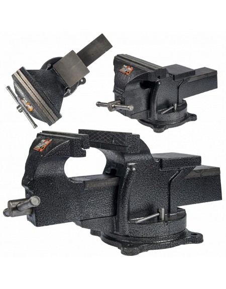 Imadło ślusarskie obrotowe, wykonane z wysokiej jakości materiałów. Stalowe szczęki imadła z antypoślizgowymi nacięciami krzyżykowymi, dodatkowo hartowane. Wytrzymała i solidna konstrukcja pozwala pewnie zamocować wybrany przez nas przedmiot w imadle oraz gwarantuje długi czas eksploatacji.