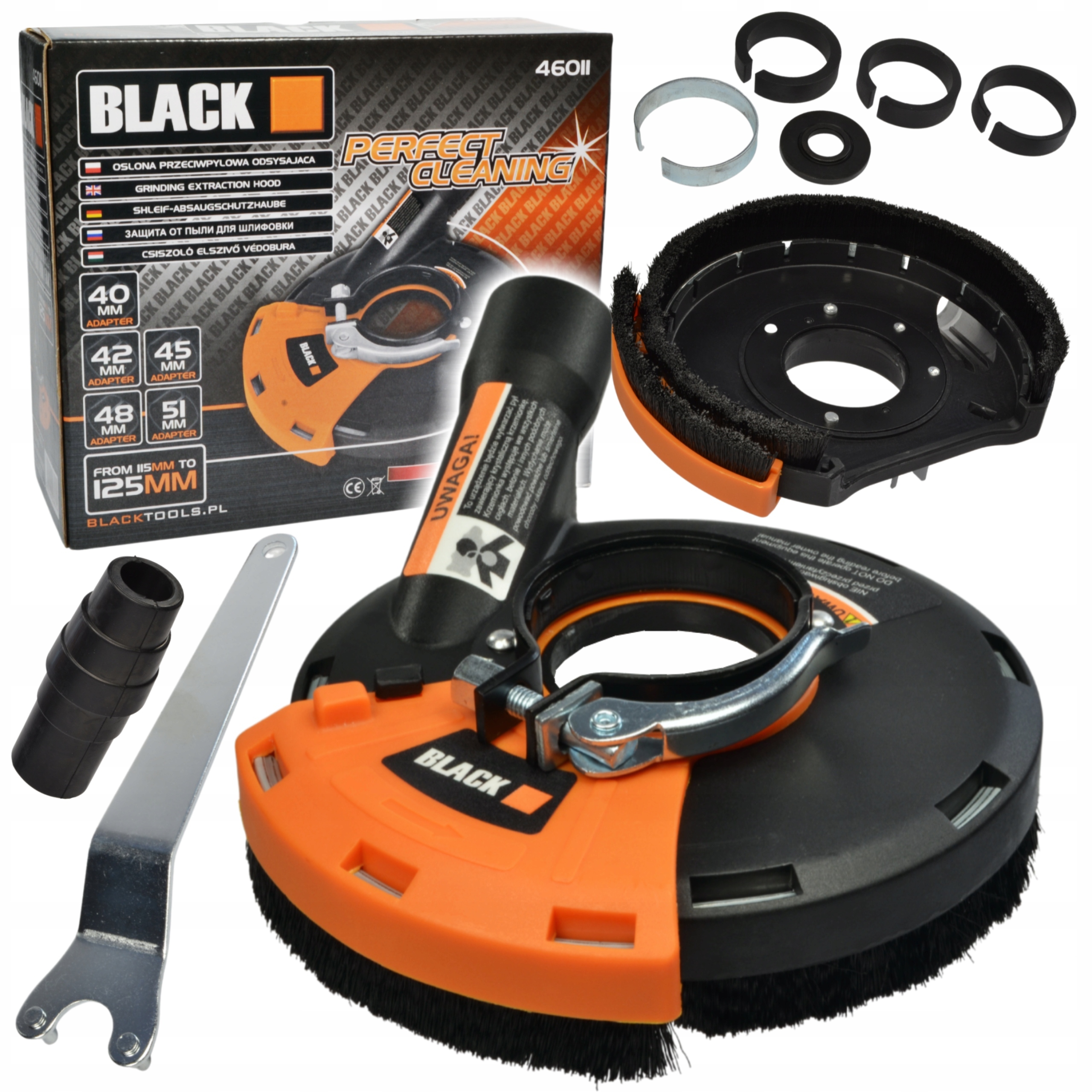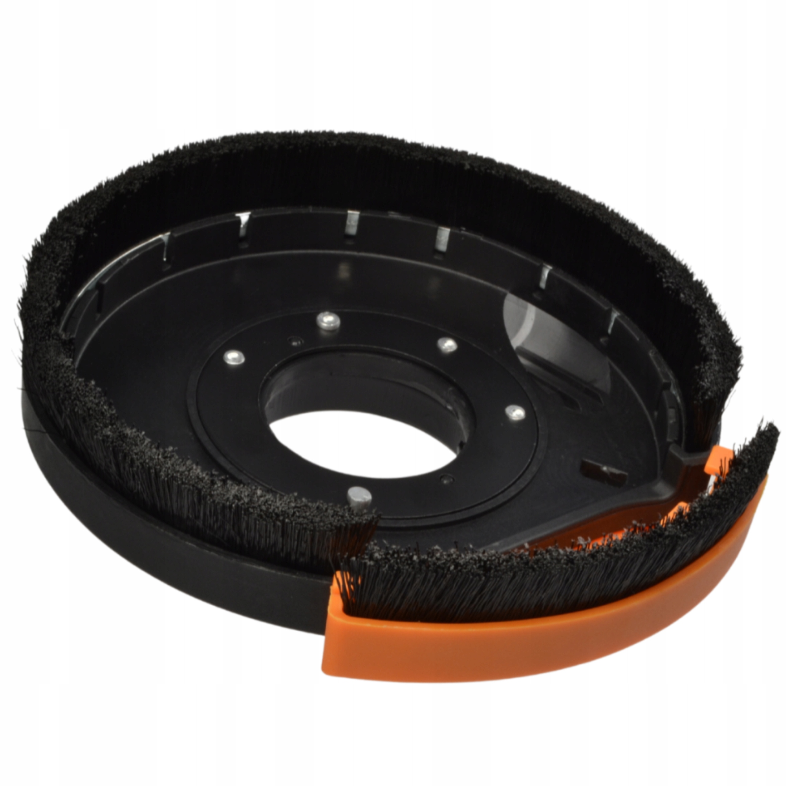 Pokrywa odsysająca z wieńcem szczotkowym to dodatkowe zabezpieczenie podczas szlifowania. Adapter/osłona umożliwia skuteczne odsysanie szkodliwego pyłu podczas szlifowania powierzchni łaskich. Urządzenie mocuje się do kołnierza wrzeciona w miejsce standardowej osłony metalowej co zapewnia szczelne i solidne łączenie osłony ze szlifierką, podczas pracy wszystko jest stabilne, a pył prawie w 100% jest odciągany.