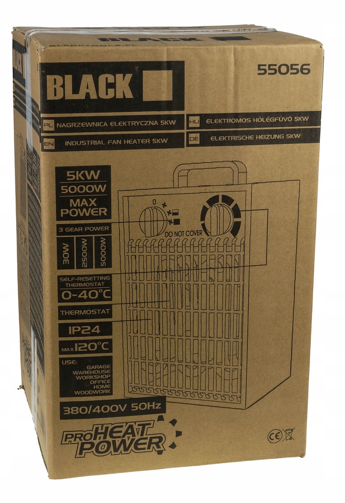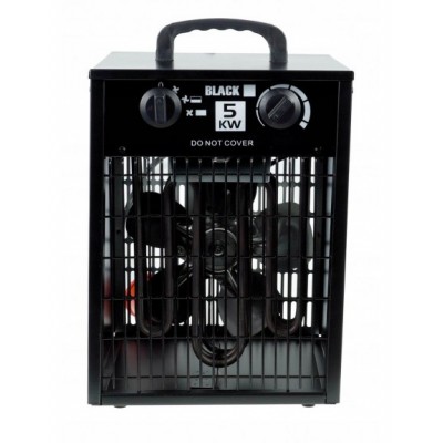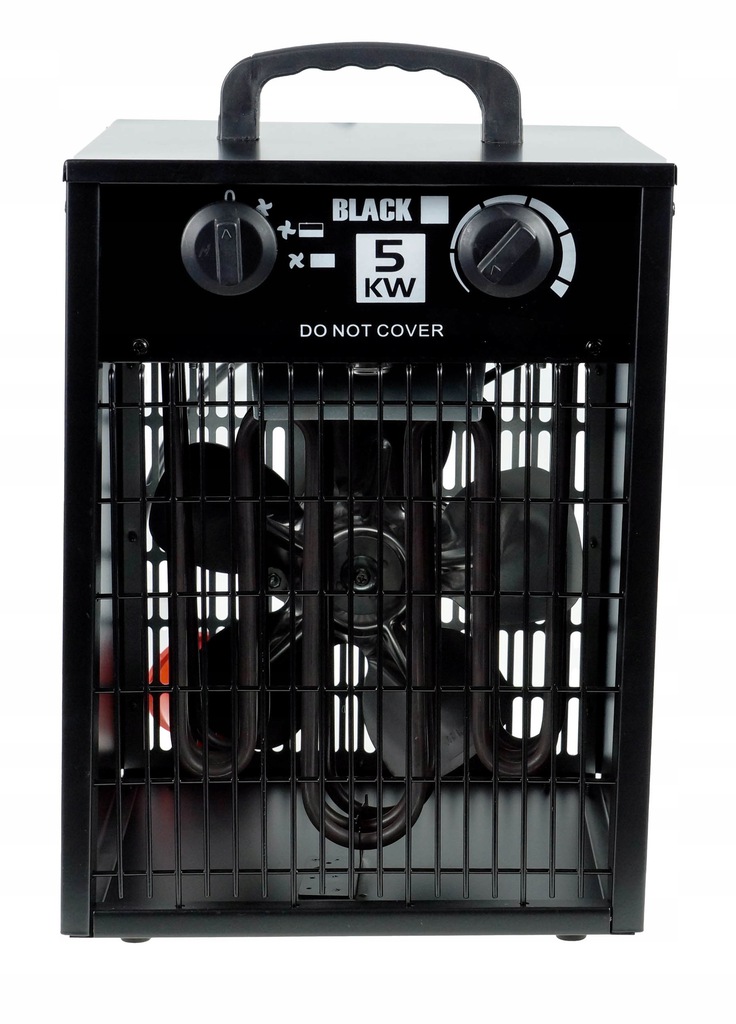 Nagrzewnica elektryczna o mocy 5 KW marki BLACK. Urządzenie posiada grzałkę wykonaną ze specjalnego kompozytu miedzi ze stalą szlachetną dzięki czemu doskonale przekazuje ciepło, wentylator wypycha dużą dawkę rozgrzanego powietrza, nagrzewnica zapewnia cyrkulację ciepłego powietrza w pomieszczeniu.