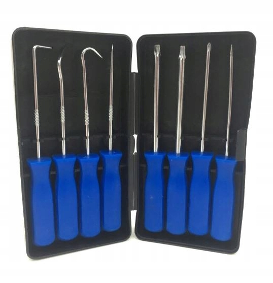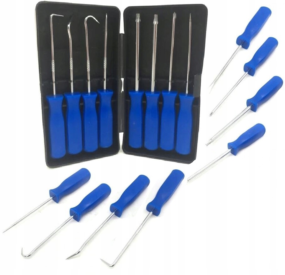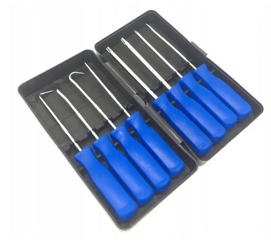 Zestaw haczyków z rękojeścią polecany jest do prac w motoryzacji, serwisach mechanicznych, usługach, budownictwie do precyzyjnego podważania, przeciągania, sparowania podzespołów z metalu, drewna i tworzyw sztucznych oraz do przekłuwania i przepychania w miejscach o utrudnionym dostępie dla innych narzędzi.