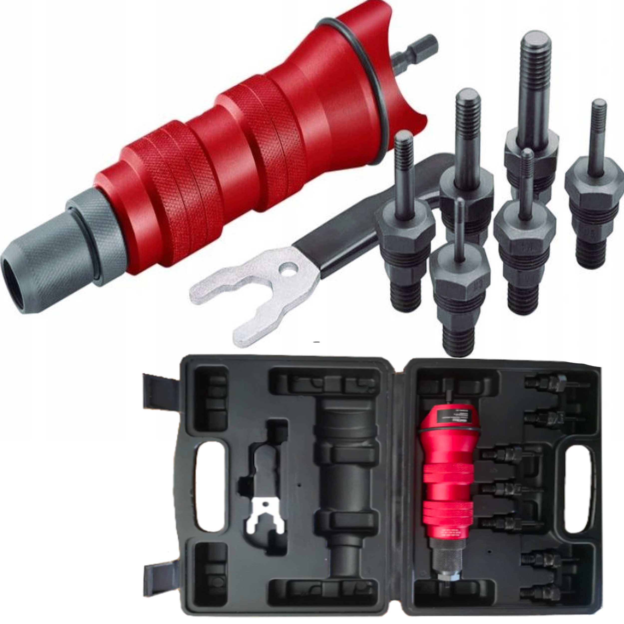 Wysokiej jakości nitownica przeznaczona do montażu na wkrętarce / wiertarce. Urządzenie pozwala na szybki i prosty montaż nitonakrętek.