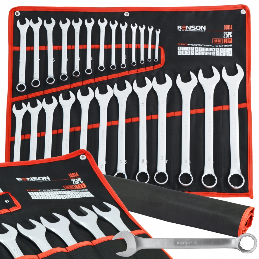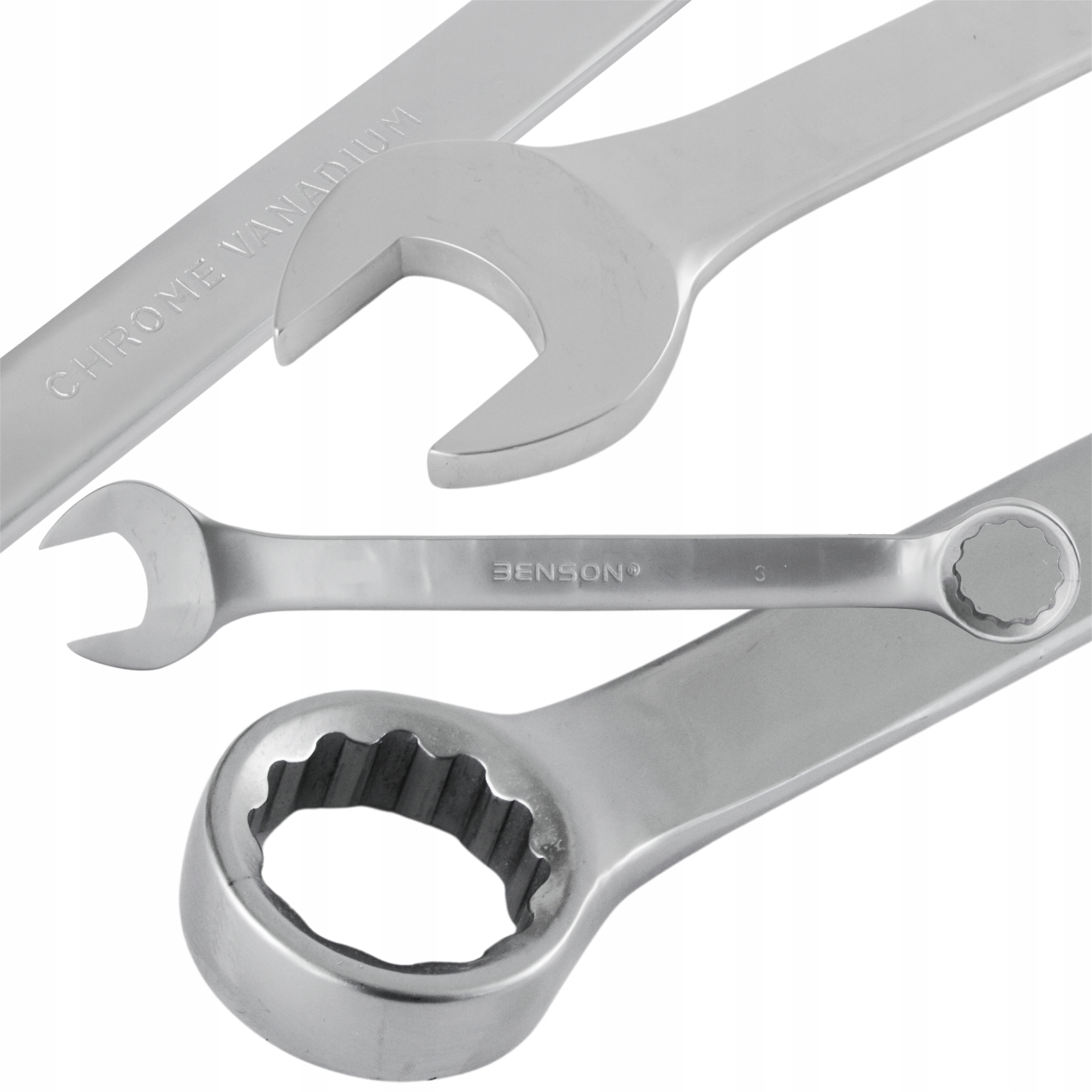 Wymarzony zestaw kluczy płasko-oczkowych BENSON BY BLACK® - teraz w rewelacyjnej ofercie! Te solidne narzędzia, wykonane z wysokiej jakości stali chromowo-wanadowej, z pewnością ułatwią Ci każdą naprawę i zlecenie. Nie czekaj dłużej - podnieś swój warsztat na wyższy poziom dzięki kluczom BENSON BY BLACK®!
