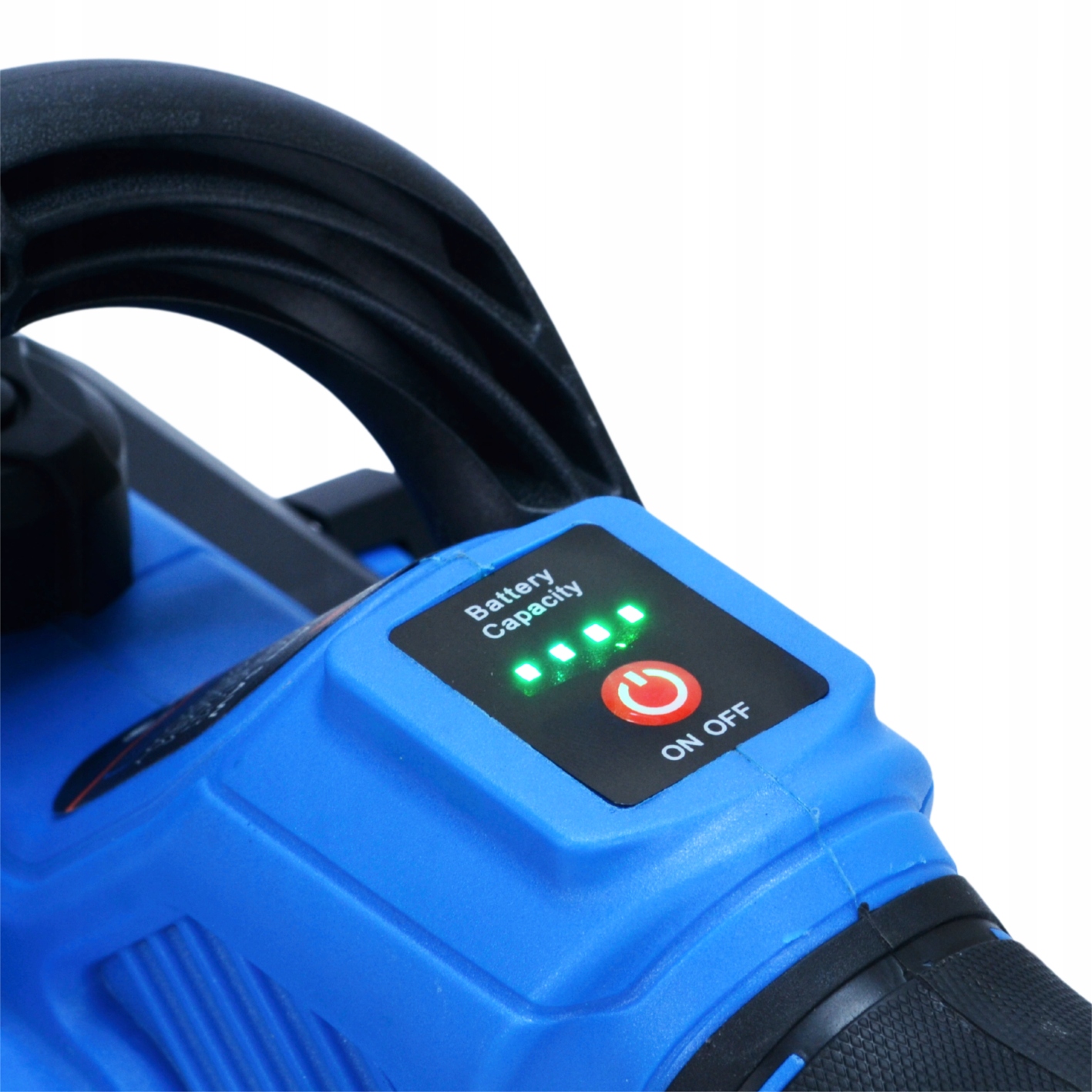 Pilarka posiada również wskaźnik naładowania akumulatora, dzięki czemu użytkownik zawsze wie, ile energii pozostało w bateriach.
