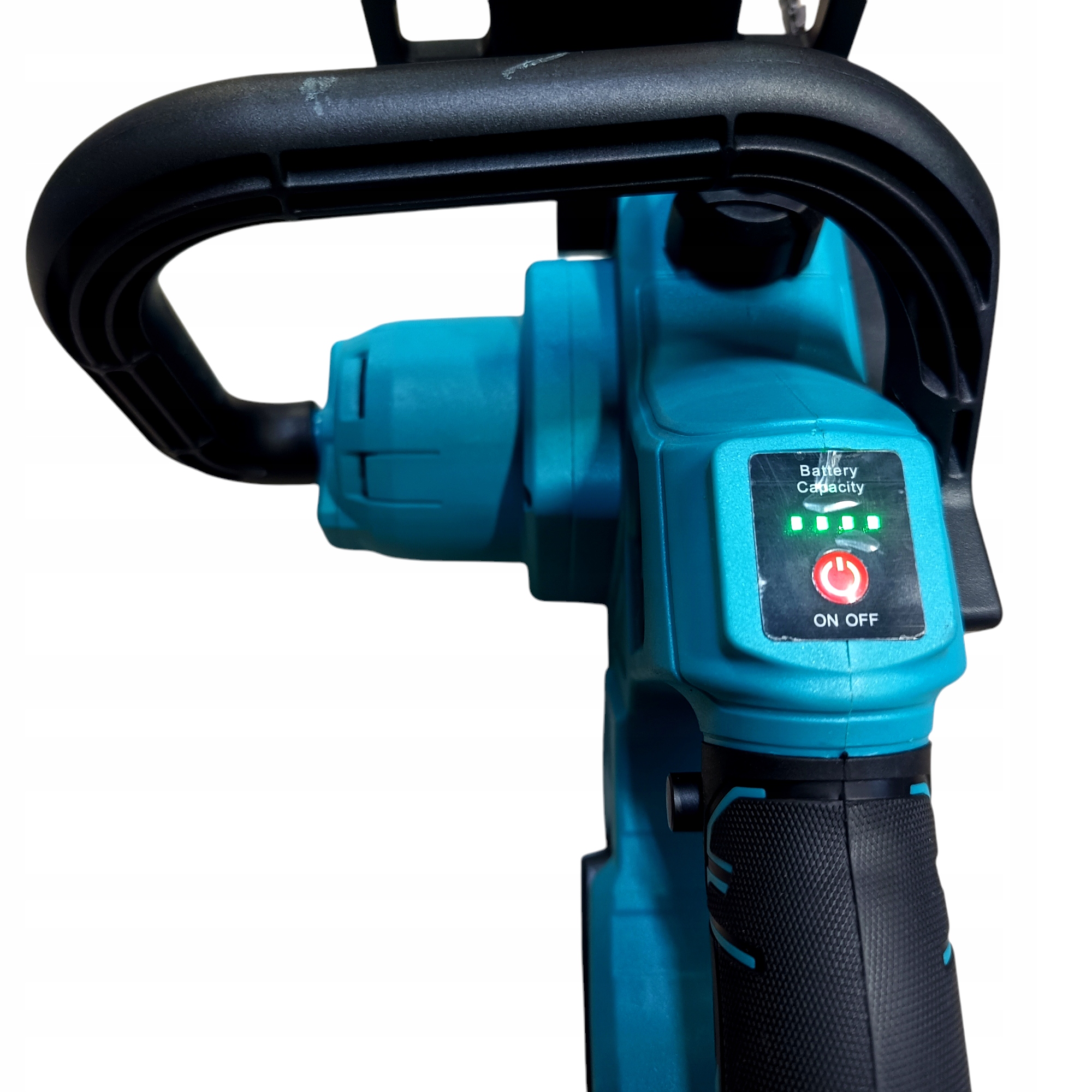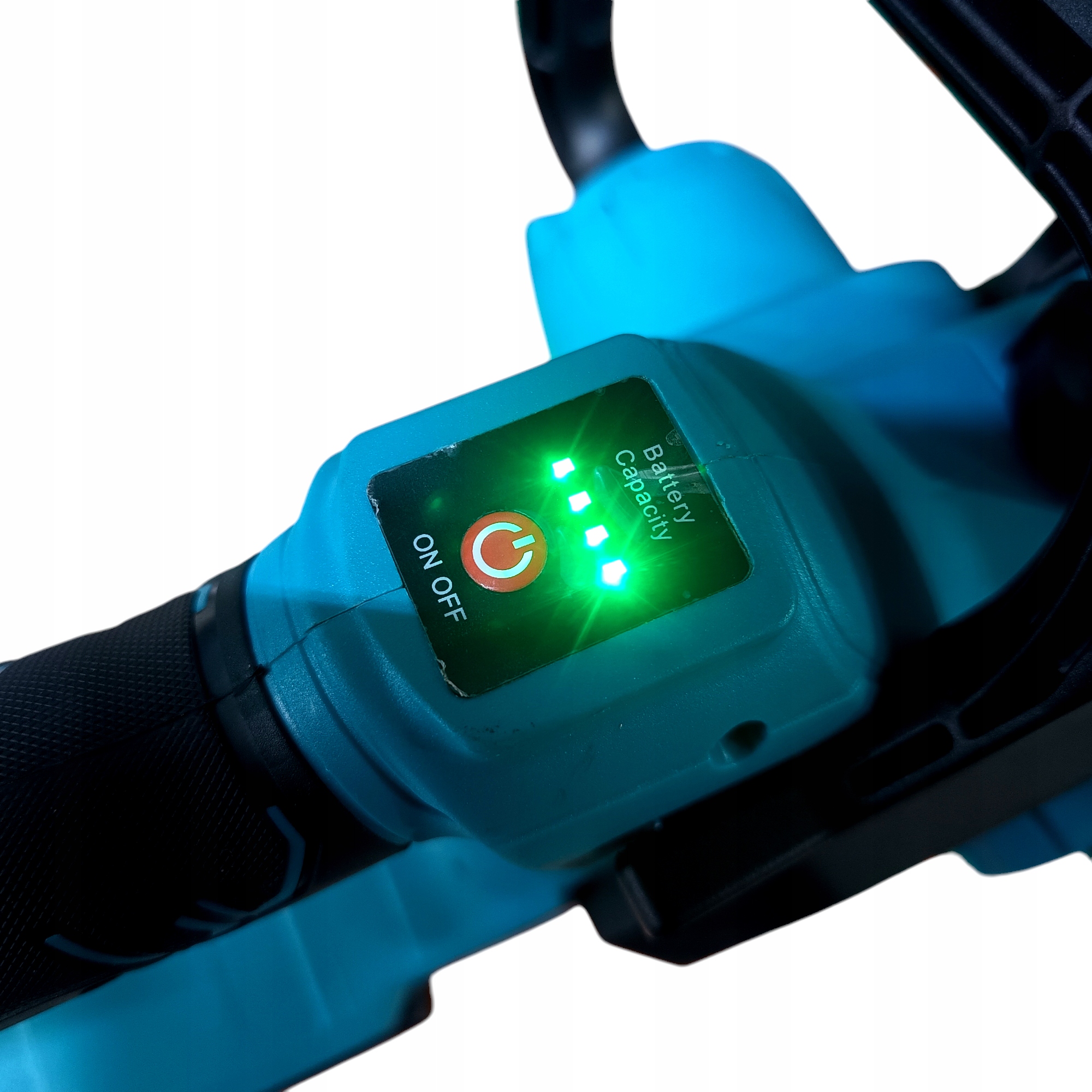 Pilarka posiada również wskaźnik naładowania akumulatora, dzięki czemu użytkownik zawsze wie, ile energii pozostało w bateriach.