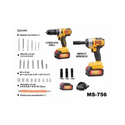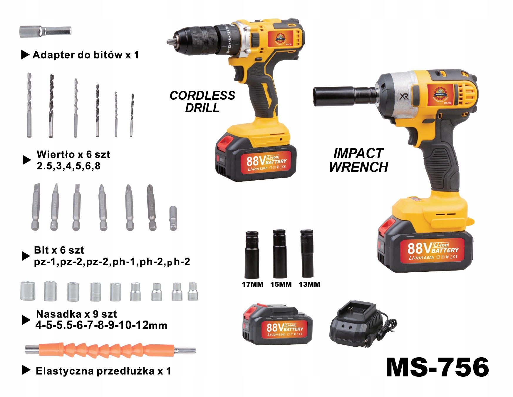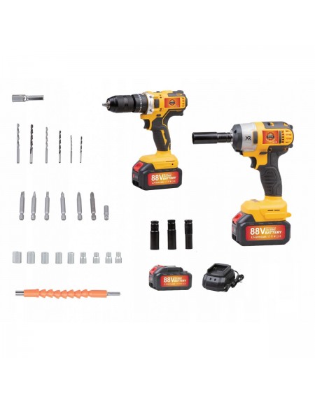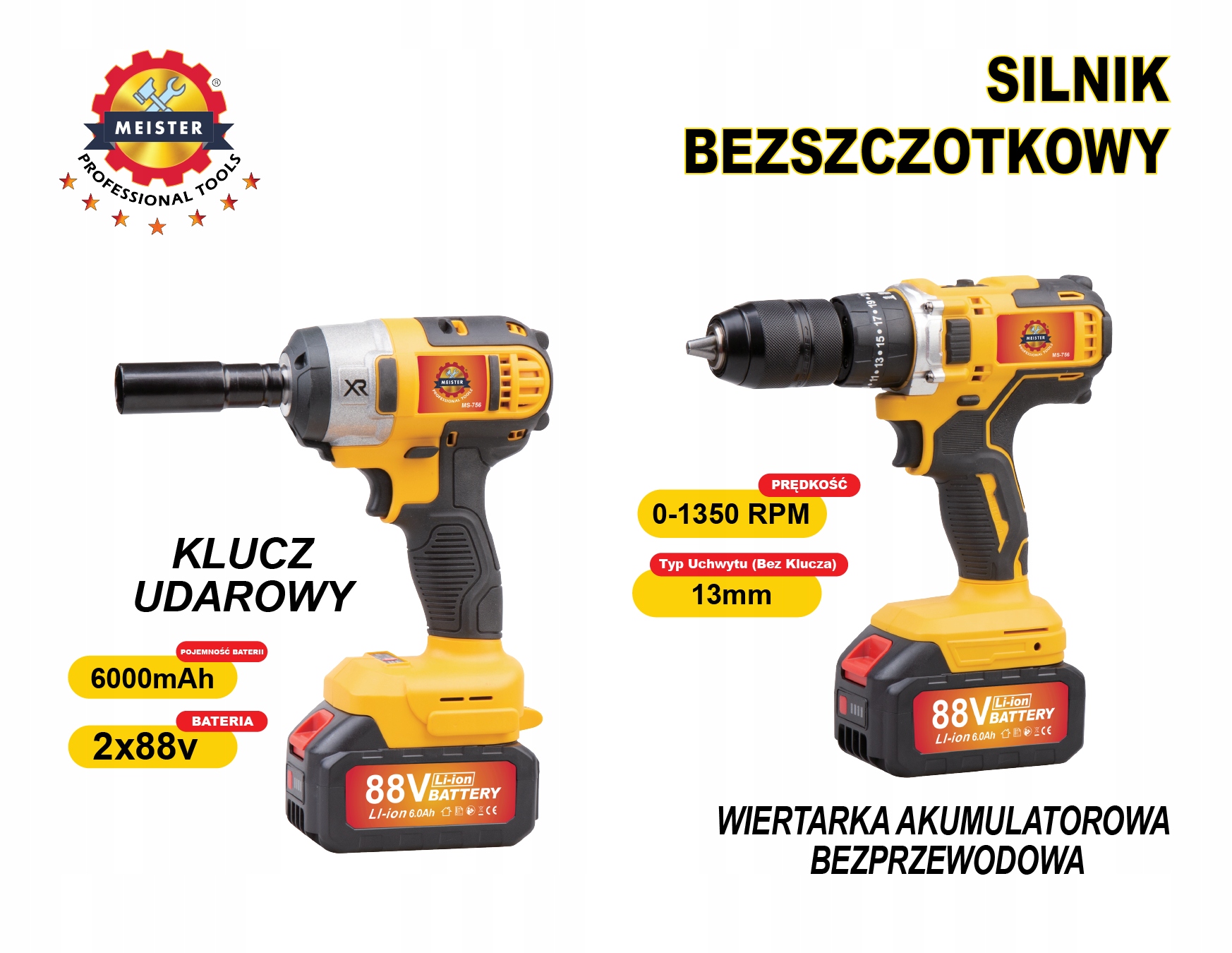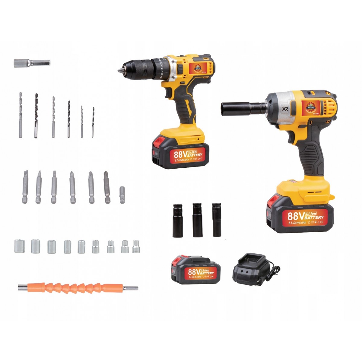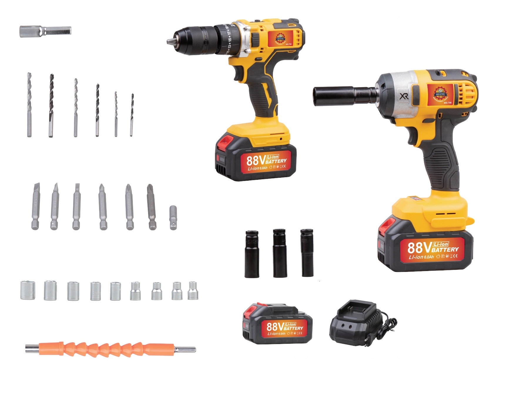 MEGA ZESTAW KLUCZ UDAROWY+ WKRĘTARKA AKU 88V 2x6Ah WALIZKA AKUMULATOR