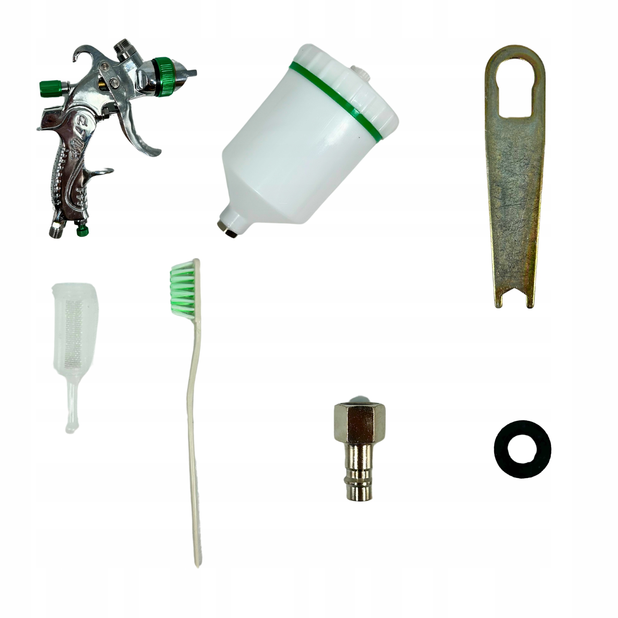 Prawidłowe działanie pistoletu lakierniczego jest możliwe dzięki podłączeniu do kompresora. Urządzenie doprowadza do zbiornika z farbą sprężone powietrze, które rozbija ją na drobne cząsteczki i „wypycha” do dyszy. Lakier wydostaje się z niej w postaci bardzo drobnych kropel w płaszczu powietrznym. Można więc porównać konstrukcję narzędzia do sposobu działania klasycznej puszki z farbą – pistolet lakierniczy jest jednak przeznaczony do wielokrotnego użytku.