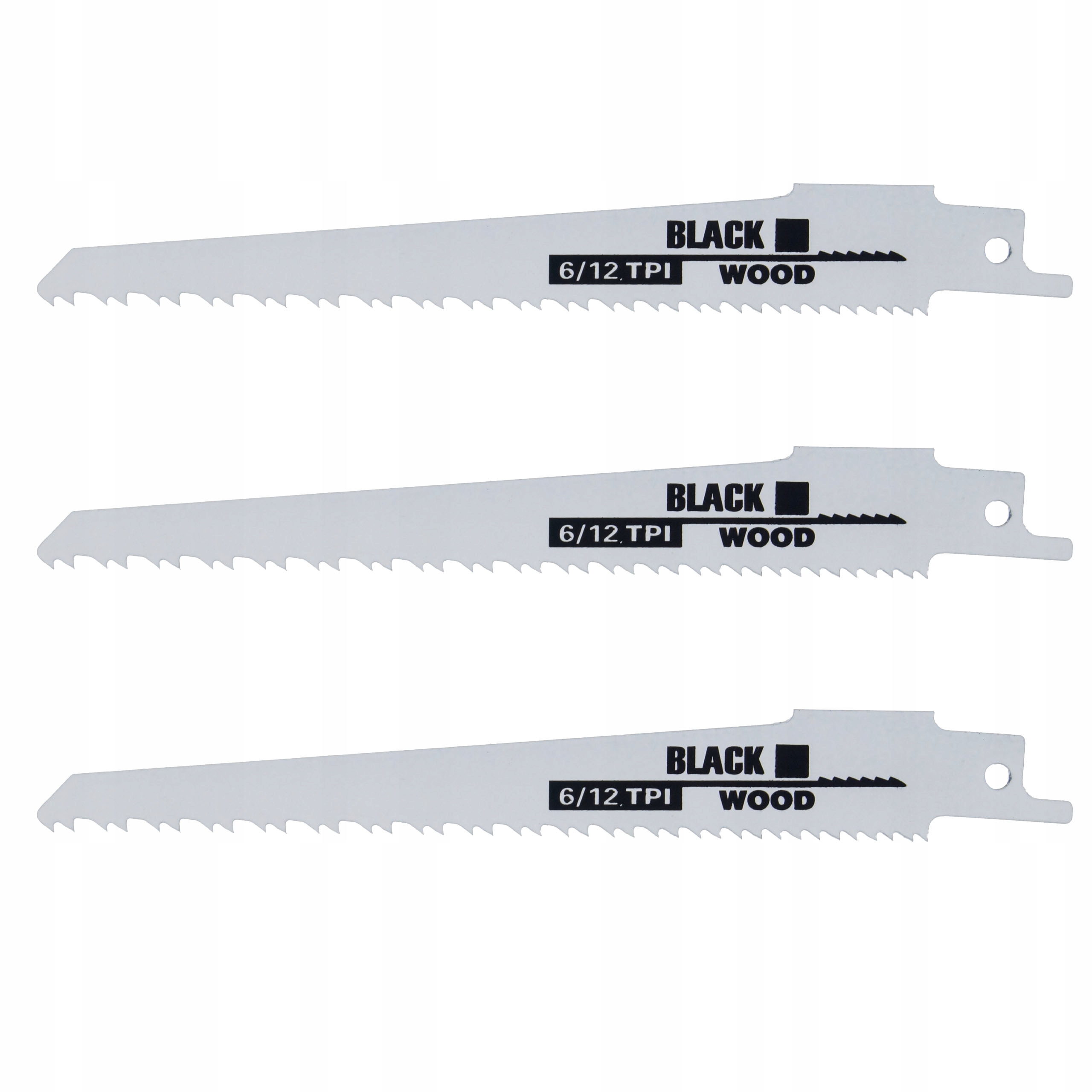Skład zestawu zawiera 3 brzeszczoty o zróżnicowanym zębie (6/12 TPI), co pozwala na wszechstronne zastosowanie zależnie od konkretnej potrzeby cięcia.