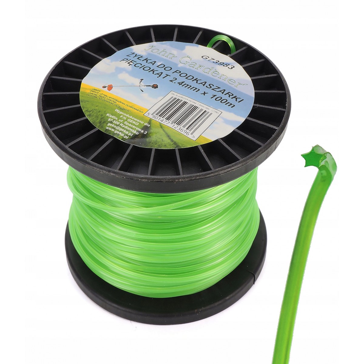 Żyłka tnąca przeznaczona do kos spalinowych i podkaszarek elektrycznych. Żyłka o przekroju pięciokąta, średnicy 2,4mm i długości 100 m wykonana została z wysoce wytrzymałego tworzywa sztucznego.