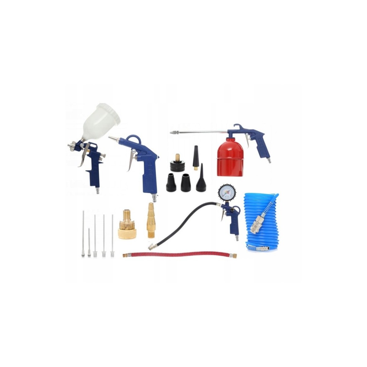 Zestaw pneumatyczny - praktyczny dodatek do kompresora, który znajdzie zastosowanie w każdym gospdarstwie domowym, warsztacie. W zestawie znajdziecie akcesoria: