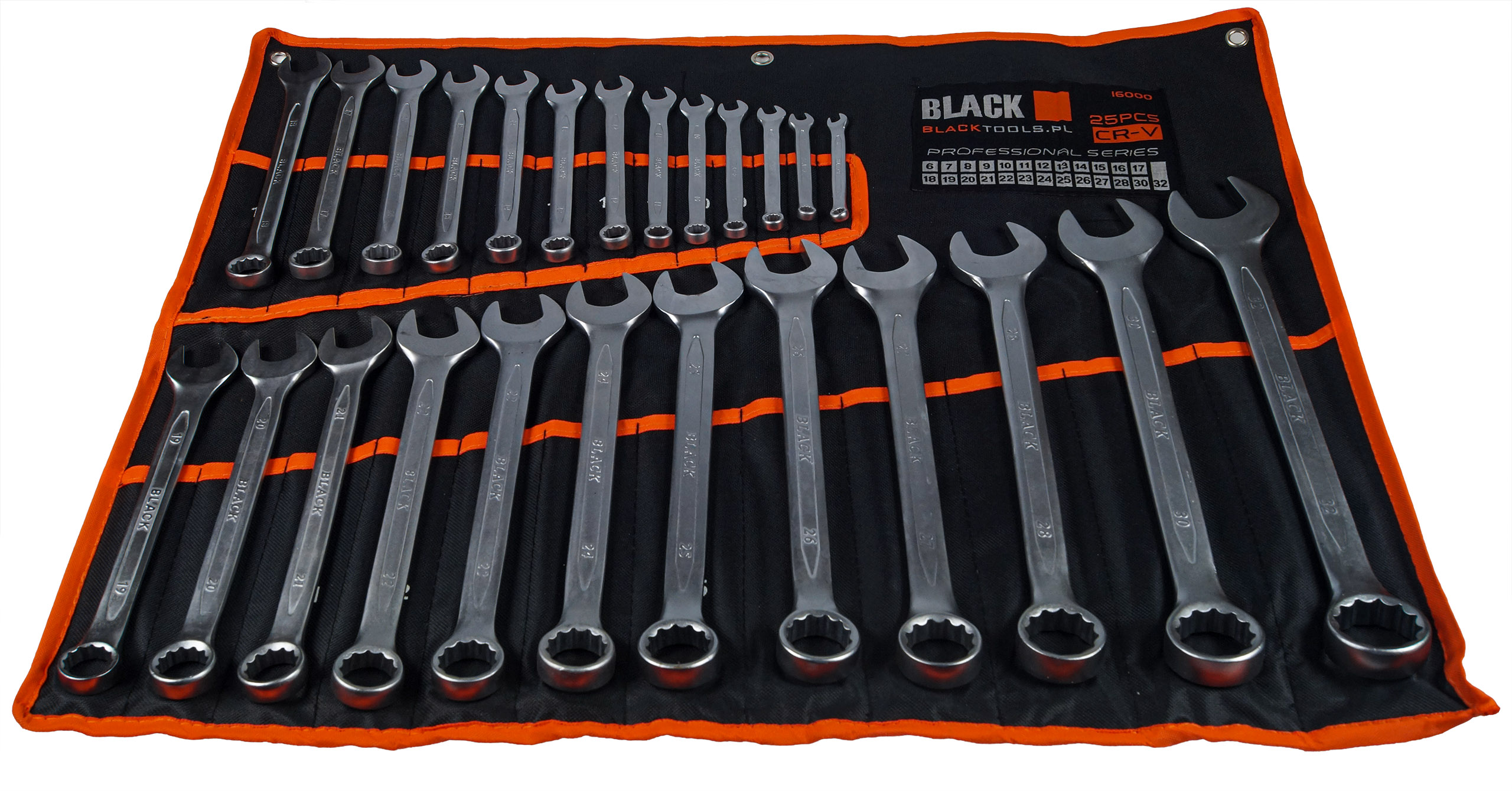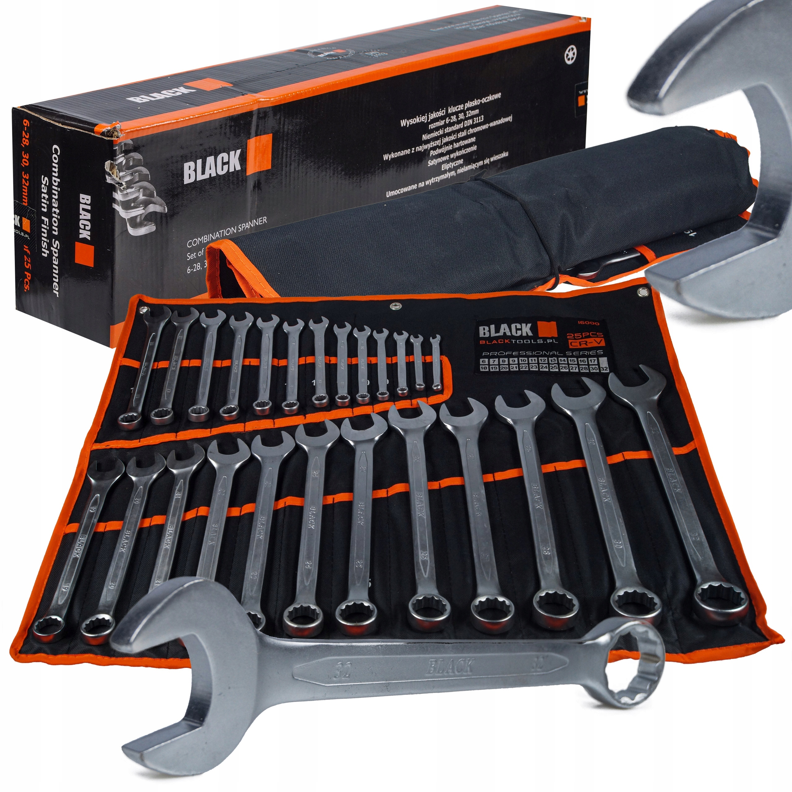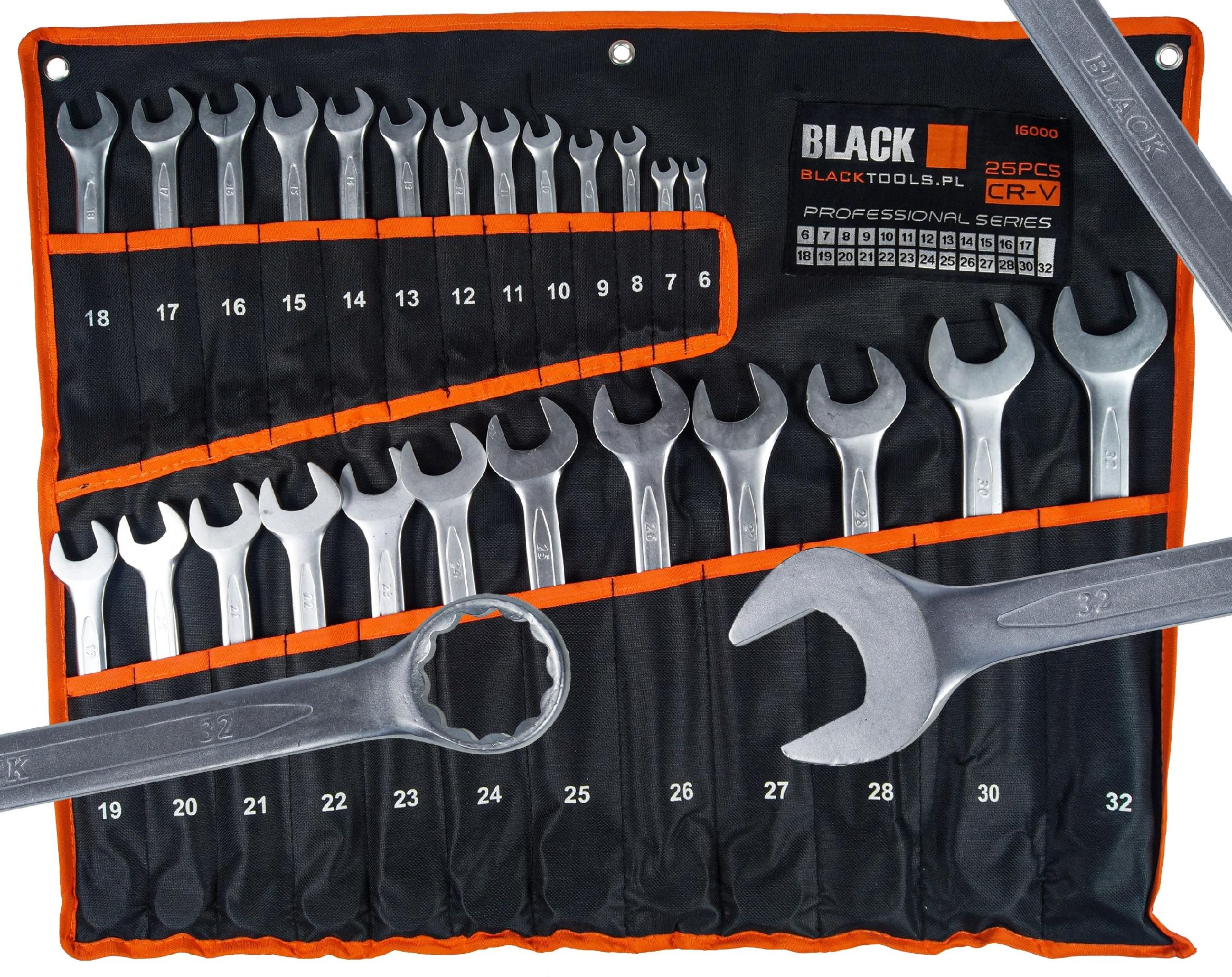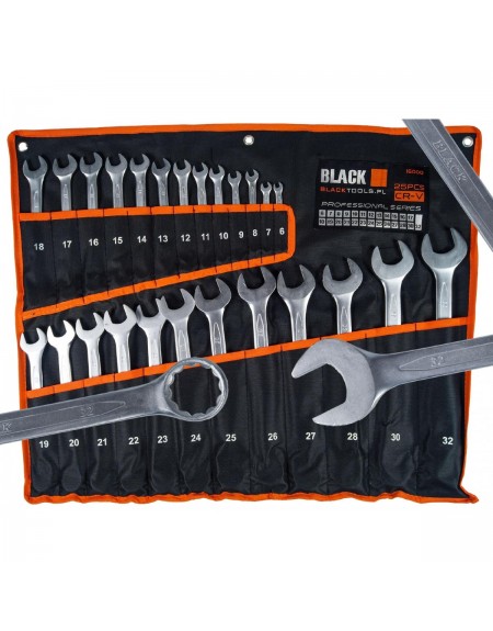 Zestaw kluczy wysokiej jakości o standardzie DIN 3113 zawiera wysokogatunkowe klucze płasko-oczkowe ze stali chromowo-wanadowej ( CR-V),podwójnie hartowane.