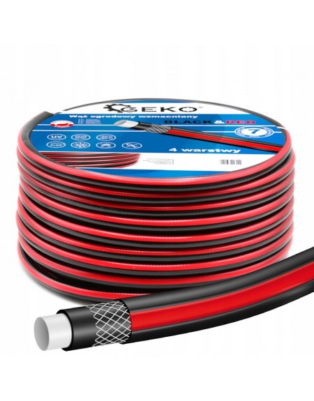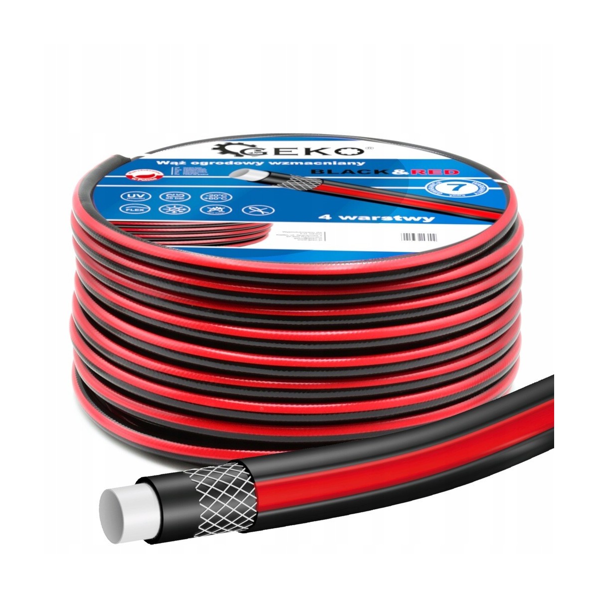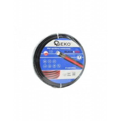 Wąż ogrodowy 4 - warstwowy, wzmacniany Black&Red marki Geko o średnicy 3/4" i długości 20 mb. Doskonale nadaje się do podlewania ręcznego oraz podłączenia różnych urządzeń zraszających. Ciśnienie rozrywające sięga aż 25 barów.