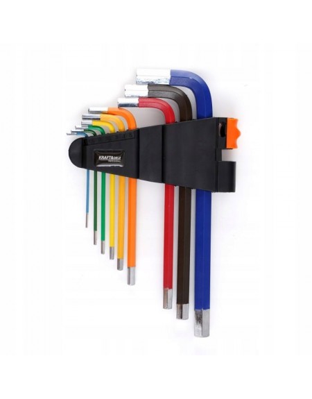 Wykonane z wysokiej jakości stali CRV, która charakteryzującej się wytrzymałością oraz sprężystością. Imbusy posiadają twardość 48-52 HRC która, gwarantuje nam długoletnie użytkowanie. Kolorowe oznakowanie kluczy, ułatwia wyszukanie odpowiedniego rozmiaru.