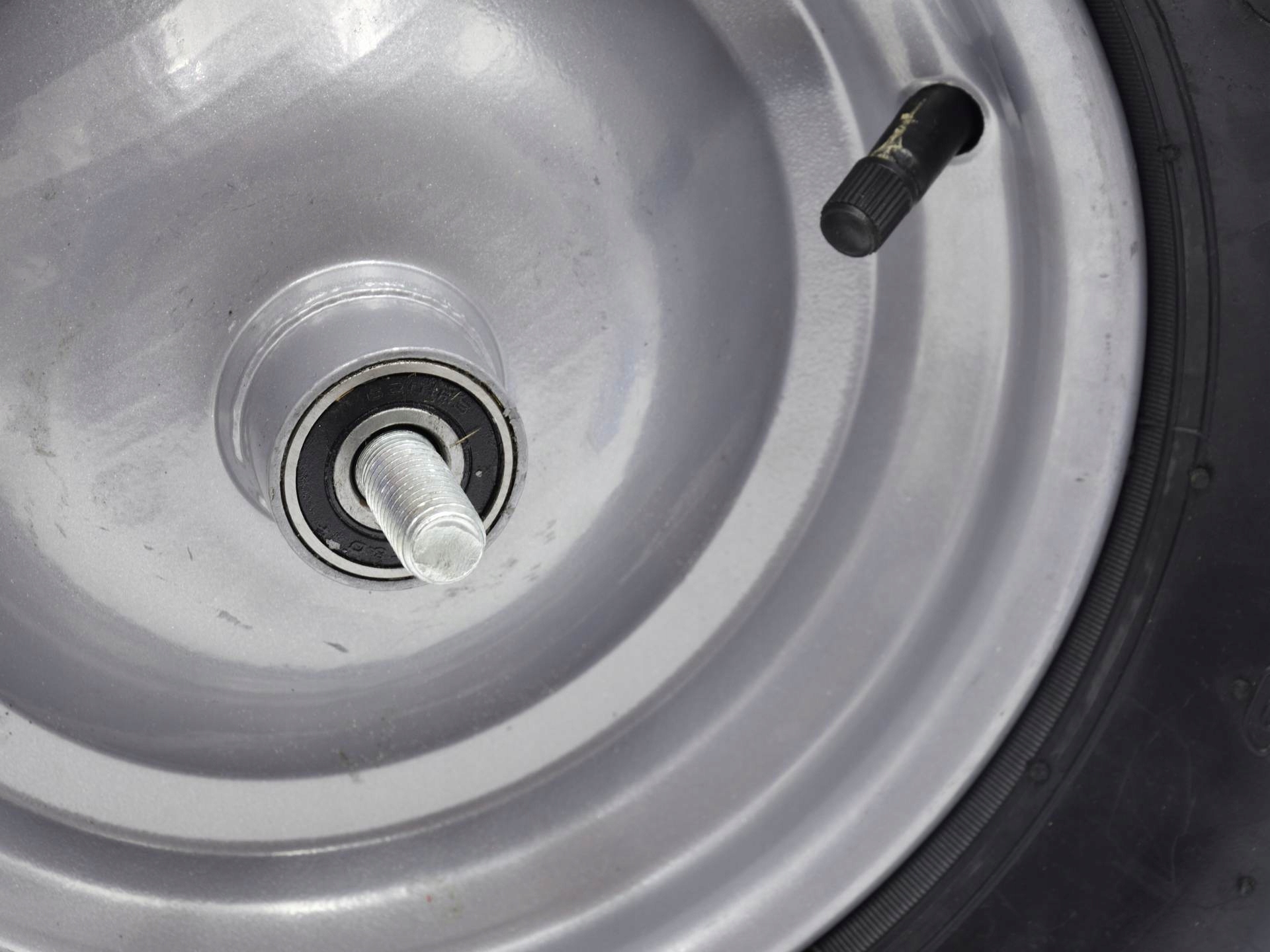 Wytrzymała metalowa felga malowana proszkowo zapewnia podwyższoną stabilność. Całość wykonana z wysokiej jakości materiałów. W zestawie ośka 12mm.