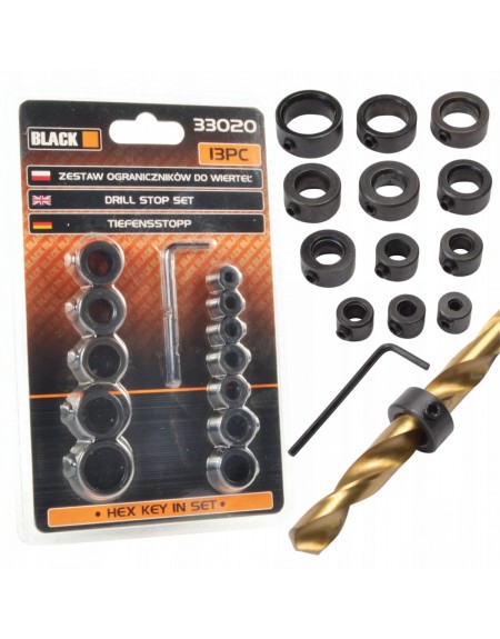 - łatwy i bezpieczny montaż do urządzenia – ogranicznik nie wypada podczas pracy, nie uszkadza narzędzia i nie przekrzywia się na wiertle podczas rozpoczętej pracy,