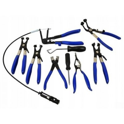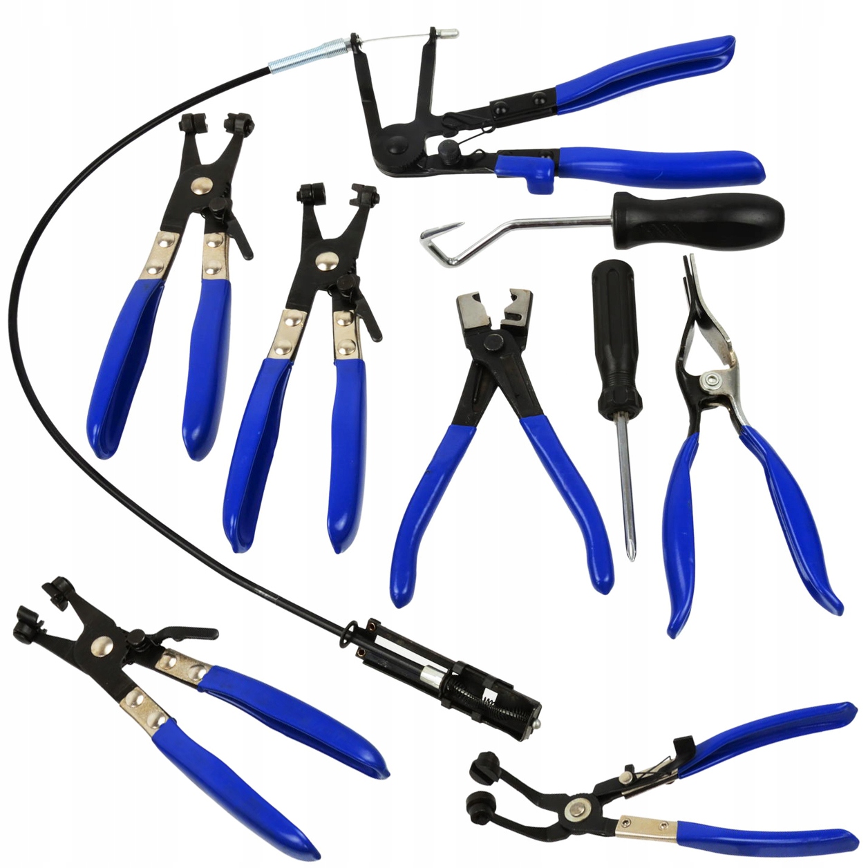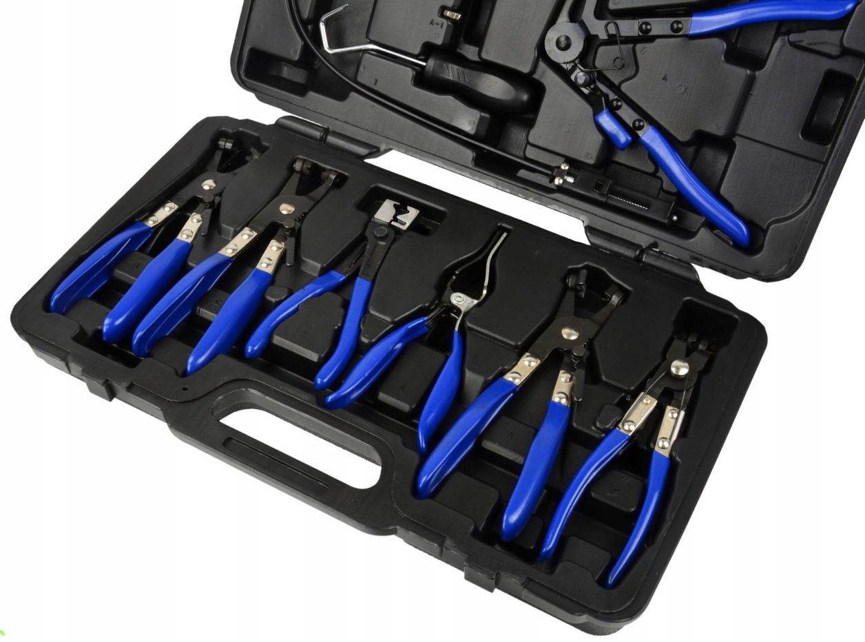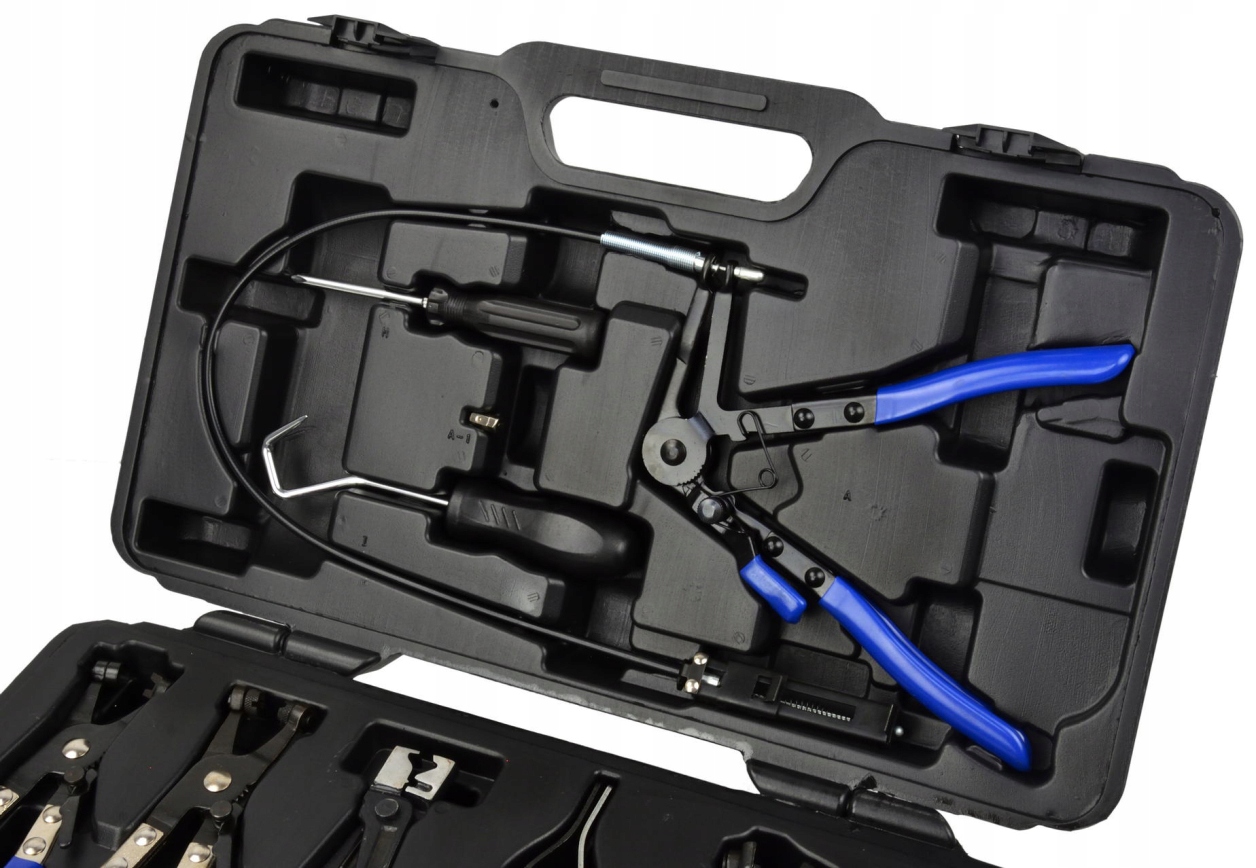 Bogaty zestaw szczypiec umożliwia montaż i demontażu opasek taśmowych, opasek osłon przegubów, opasek typu click oraz click-r, oraz szczypce do demontażu przewodów paliwowych, podciśnieniowych itp.