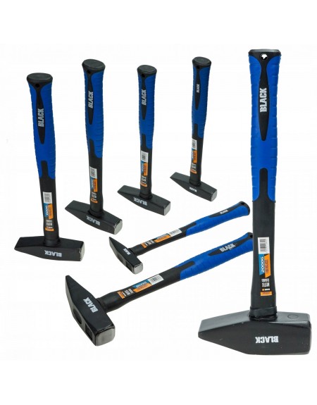 Solidny młotek ślusarski polskiej marki BLACK. Trzonek został wykonany z mocnego włókna szklanego (FIBERGLASS), co zwiększa wytrzymałość narzędzia. Specjalna gumowa warstwa gwarantuje pewny chwyt młotka nawet w ciężkich warunkach. Młotek idealny do zastosowań domowych jak i w profesjonalnym warsztacie.
