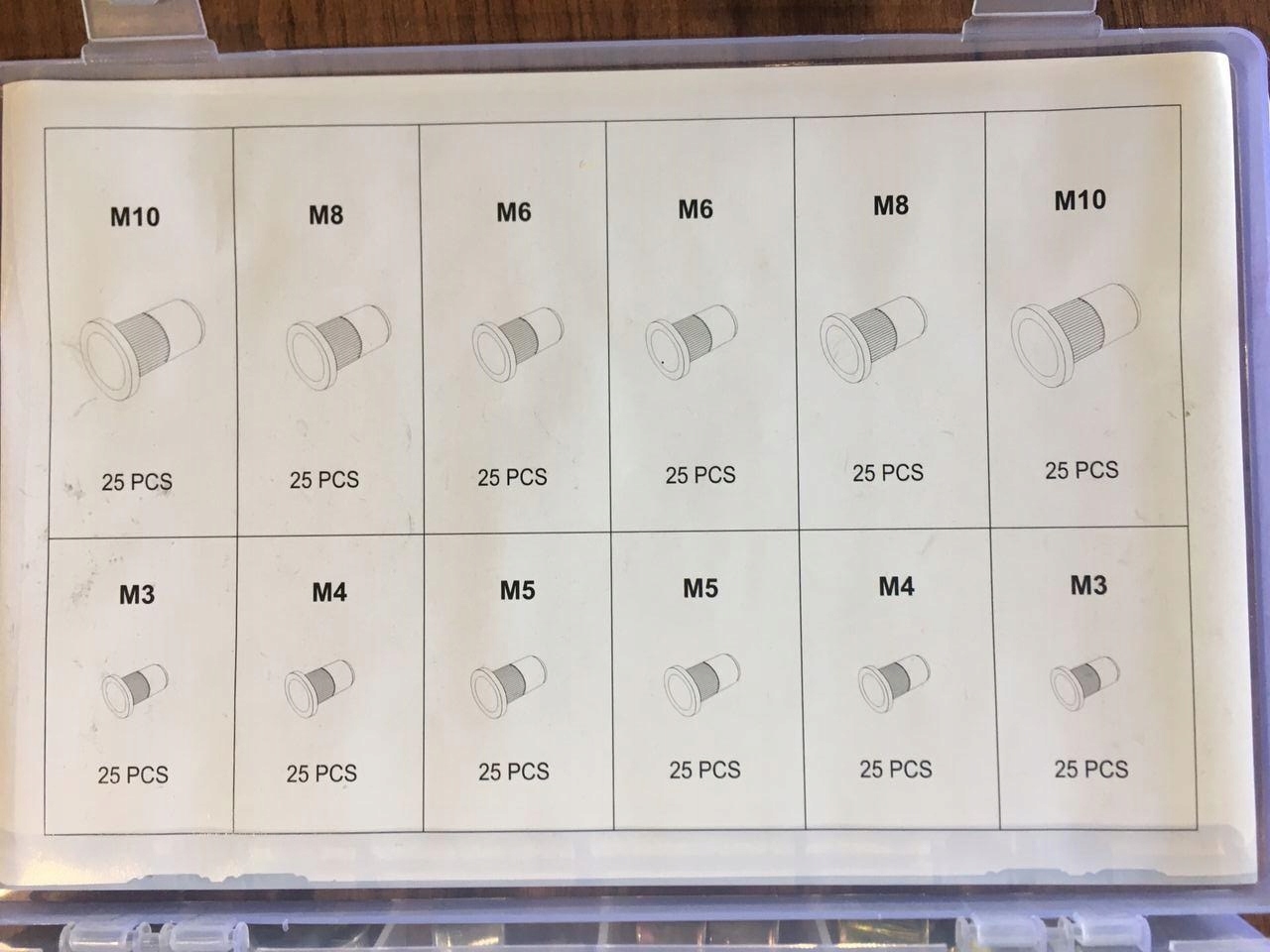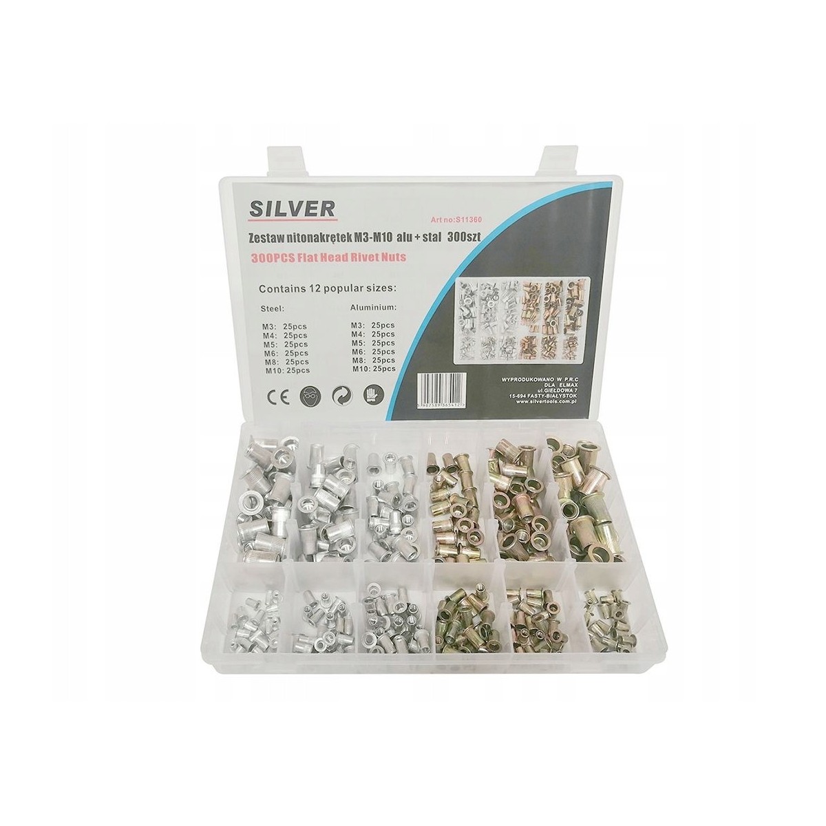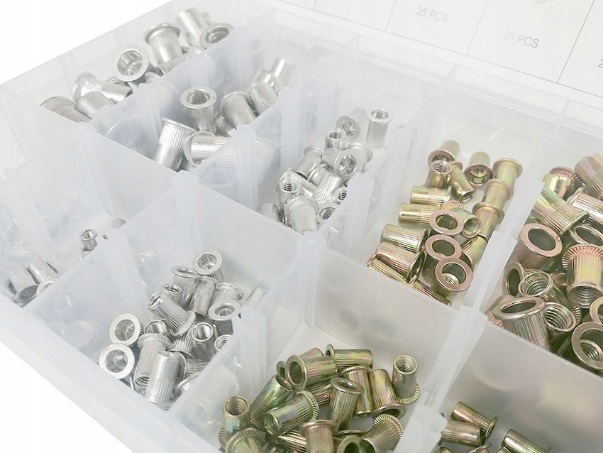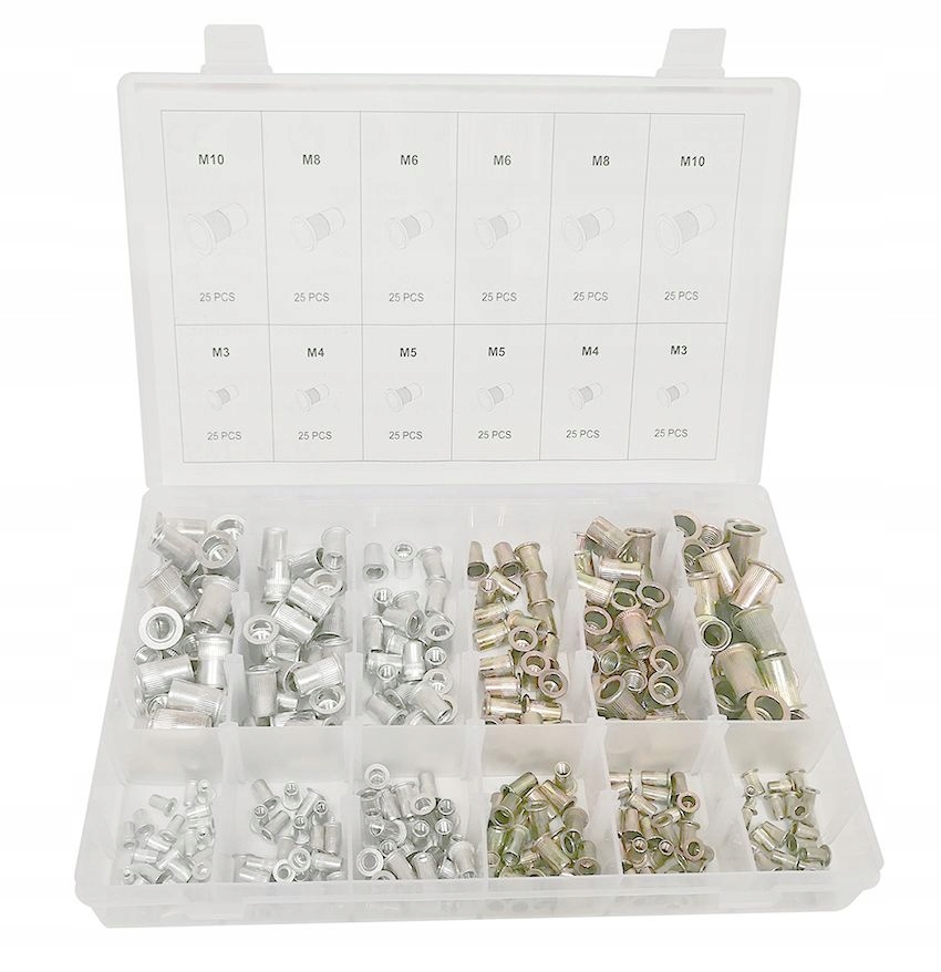 Zestaw stalowo-aluminiowych nitonakrętek M3-M10.