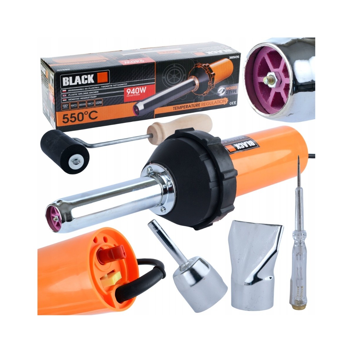Ta profesjonalna spawarka, zgrzewarka i opalarka do plastiku i plandek marki Black (38505) to idealne narzędzie do wszelkiego rodzaju prac związanych z tworzywami sztucznymi. Wykorzystuje ona gorący strumień powietrza, co pozwala na suszenie, rozklejanie, odkształcanie, usuwanie farb i lakierów oraz łączenie rur i innych profili plastikowych. W zestawie znajdują się dwie różne dysze, które umożliwiają precyzyjne wykonywanie różnorodnych zadań. Ta nowoczesna spawarka/zgrzewarka działa na zasilanie 230V/50Hz, posiada moc wyjściową 940W oraz zakres temperatur od 20°C do 550°C. Wyposażona w wygodny wałek silikonowy i akcesoria montażowe, ta spawarka zapewni Ci niezbędne narzędzia do profesjonalnej pracy.