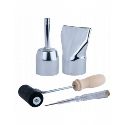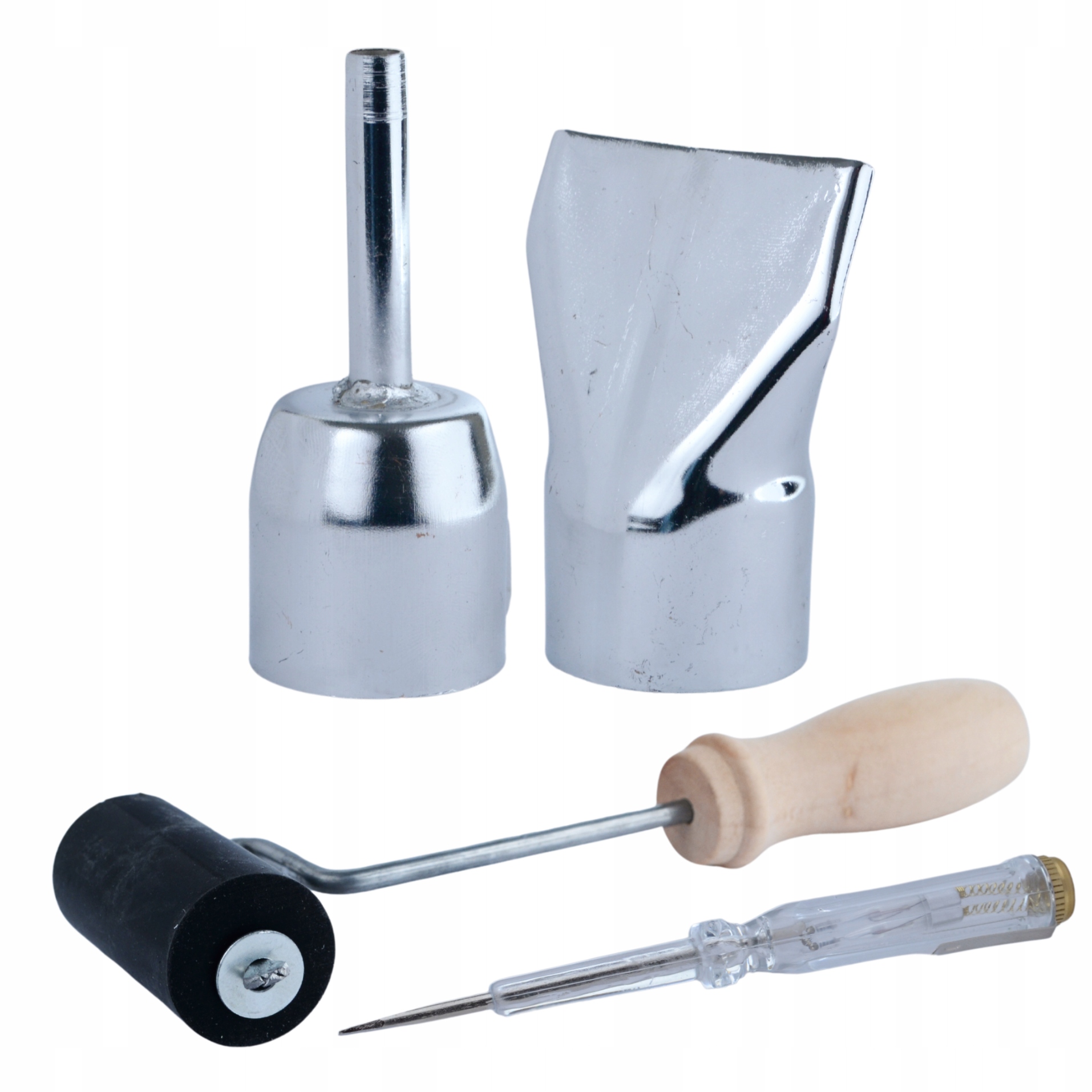 W skład zestawu wchodzi profesjonalna spawarka z elektroniczną, bezstopniową regulacją temperatury, która umożliwia precyzyjne dopasowanie do konkretnej pracy. Zestaw dodatkowo zawiera 2 dysze o różnym kształcie, idealne do różnego rodzaju zgrzewania. Dodatkowo w komplecie znajduje się przywieralny wałek silikonowy oraz akcesoria montażowe.