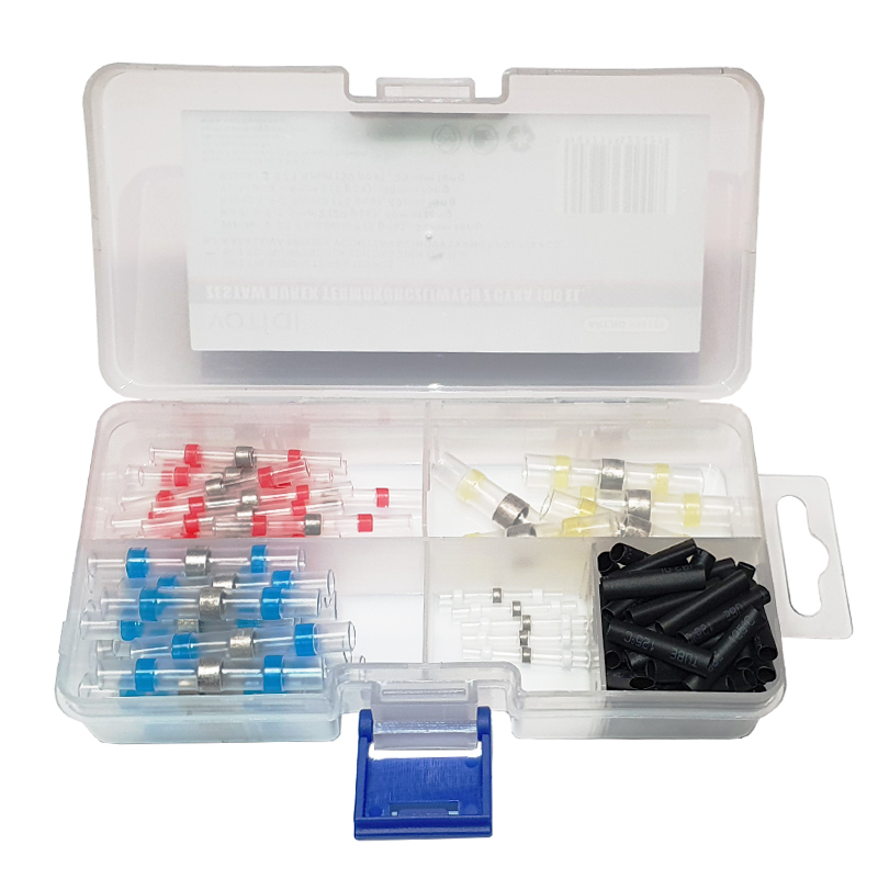 Hermetyczne termokurczliwe złącza lutownicze to doskonała odporność na rozciąganie i uszkodzenia mechaniczne. Dwuścienne rurki polioetylenowe po zewnętrznej stronie z cyną w środku który zapewnia doskonałą wodoodporność. Wewnątrz każdej szybkozłączki znajduje się warstwa kleju, która wzmacnia i zabezpiecza połączenie przed wilgocią. Po złączeniu przewodów nie wymagana jest żadna dodatkowa izolacja. Rurki termokurczliwe z cyną można stosować w samochodach, łódkach, motocyklach i gospodarstwie domowym.
