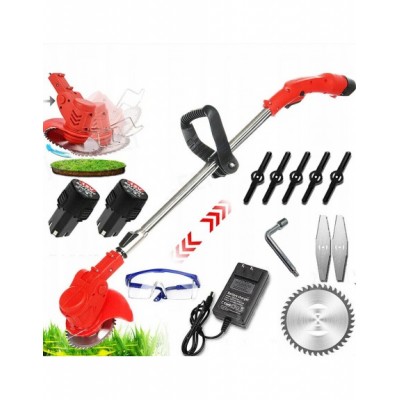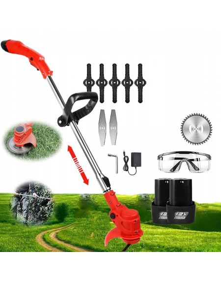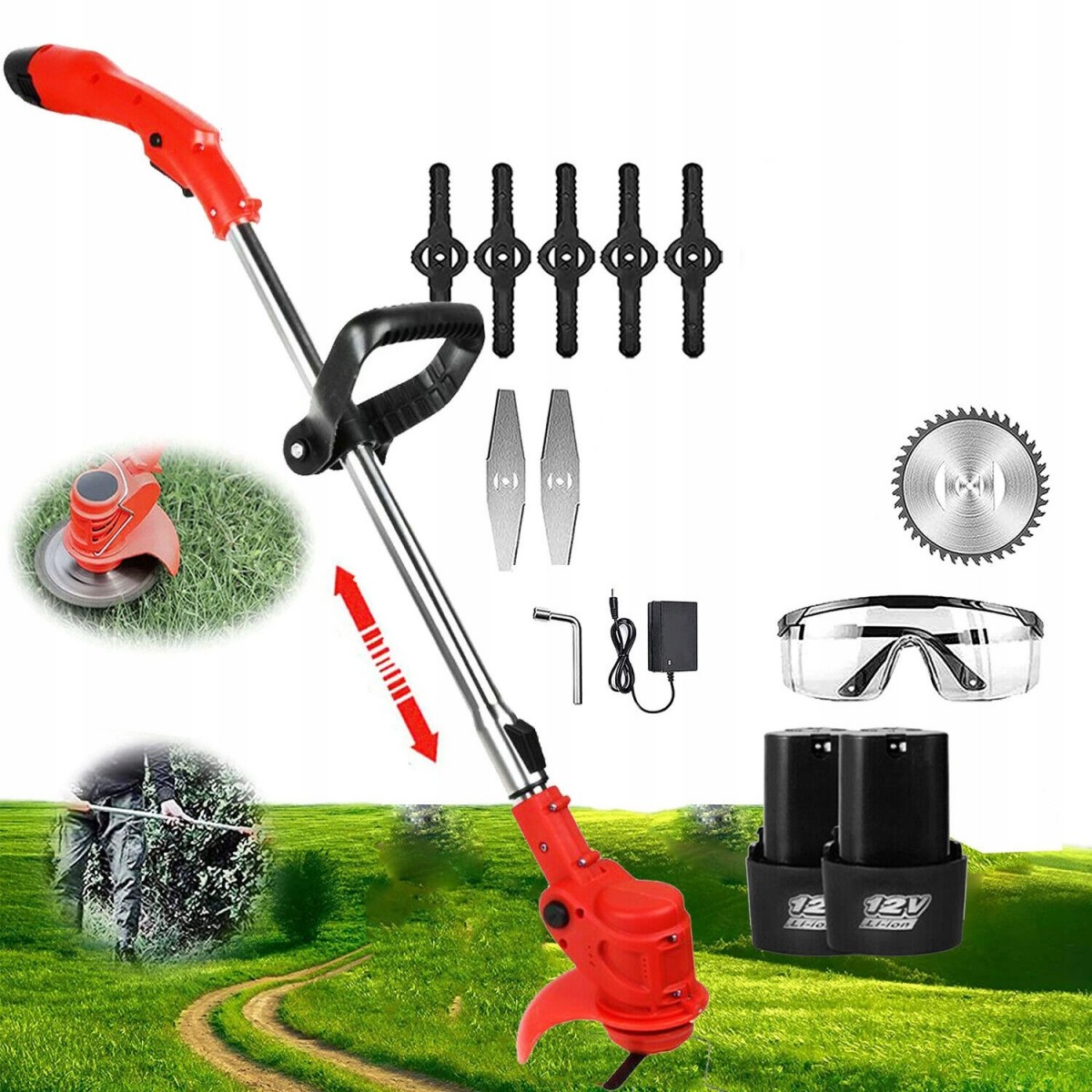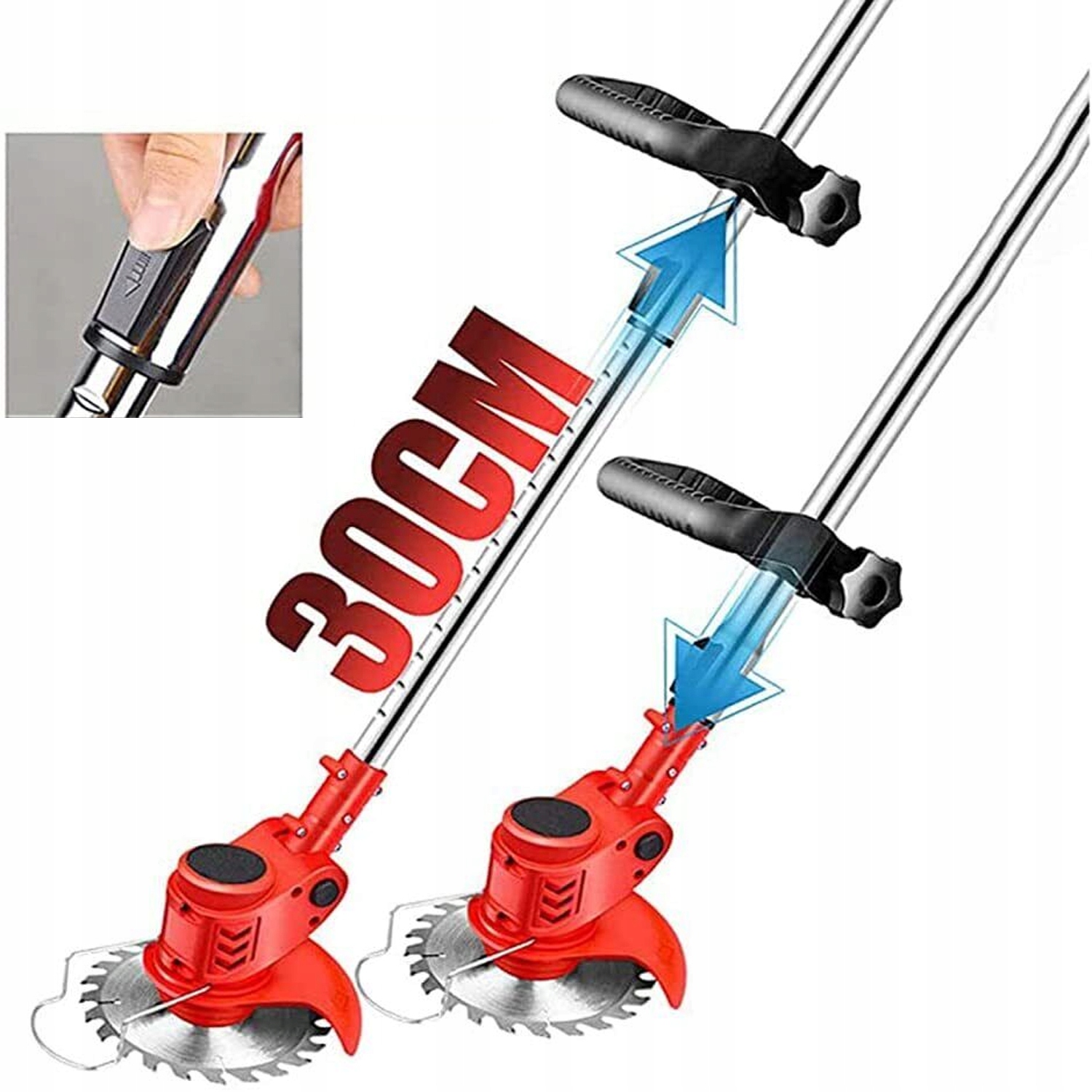 AKUMULATOROWA kosiarka o mocy 650 W. Regulowany drążek teleskopowy. Kombinacja trzech ostrzy.