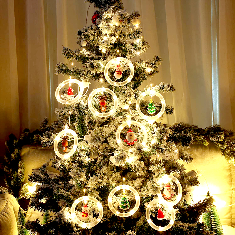 Ilość ozdób: 10 sztuk (trzy mikołaje, trzy bałwany, dwie choinki, dwa renifery)