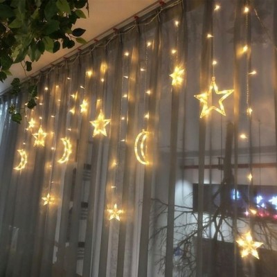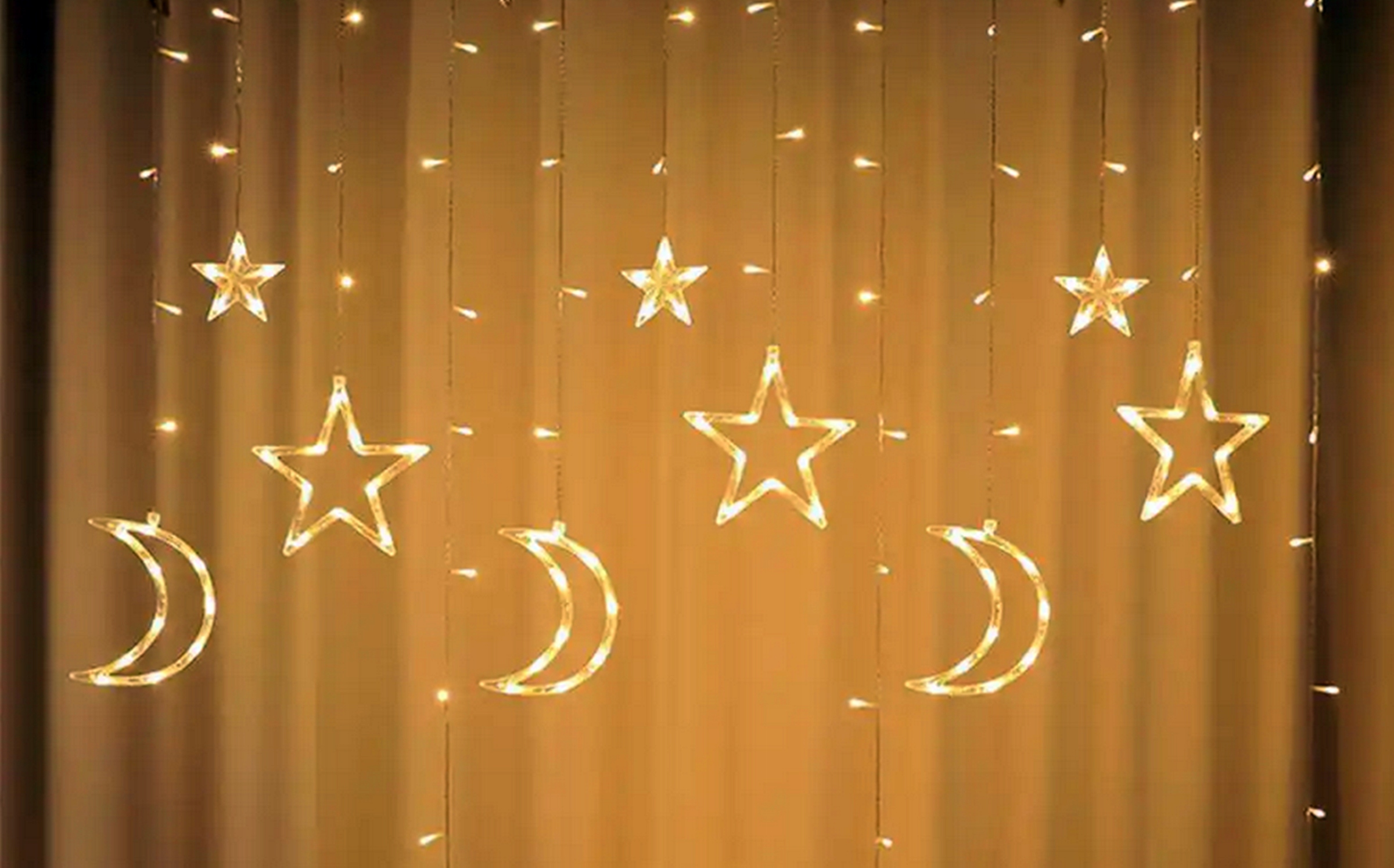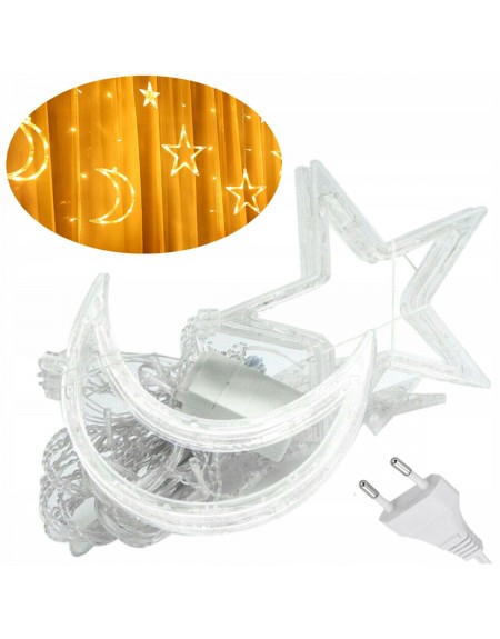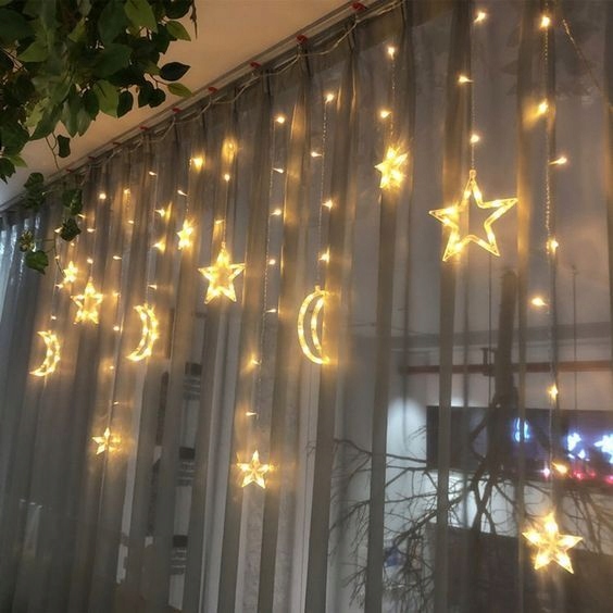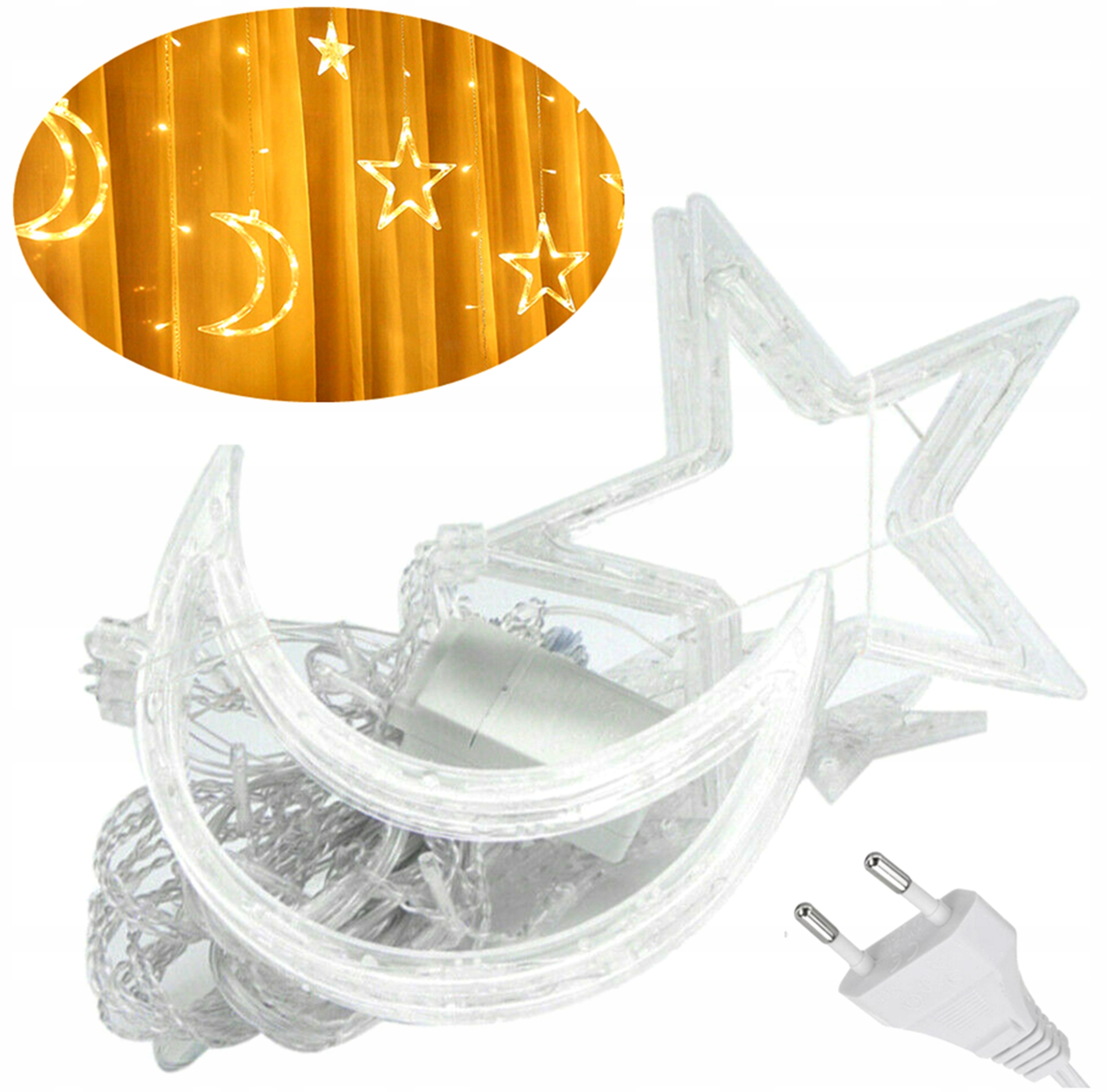 Girlanda składająca się z księżyców i gwiazdek to świetny pomysł na dekorację pokoju dziecka. Świecącej kurtyna może spełniać rolę lampki nocnej lub dodatkowego oświetlenia dekoracyjnego.