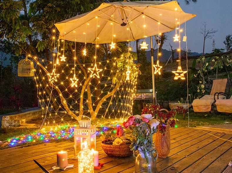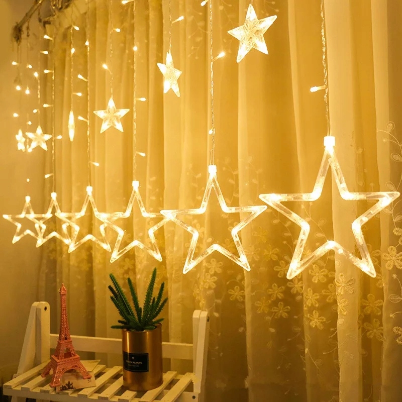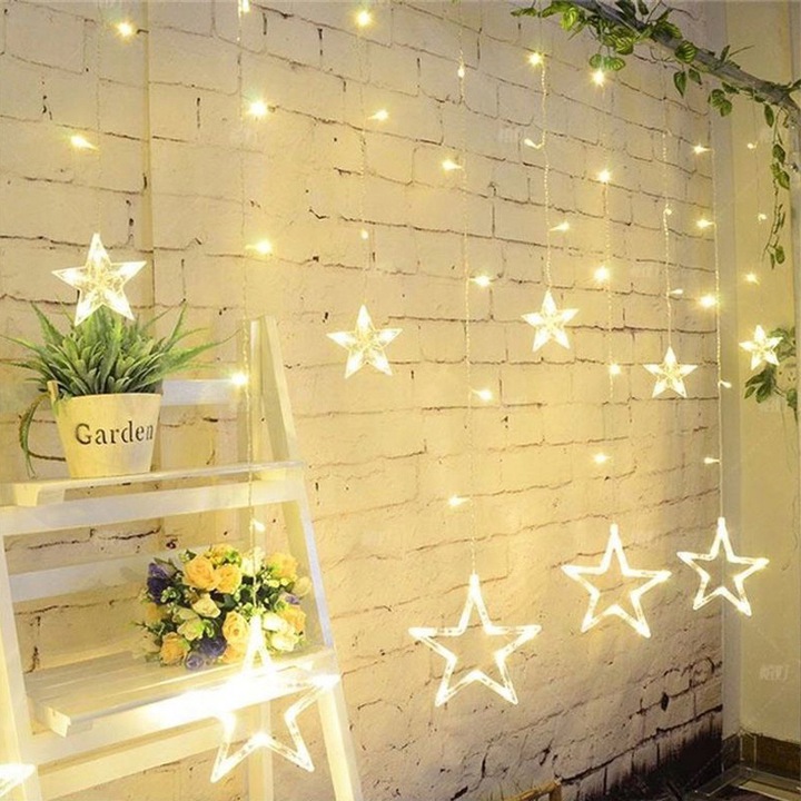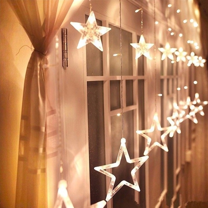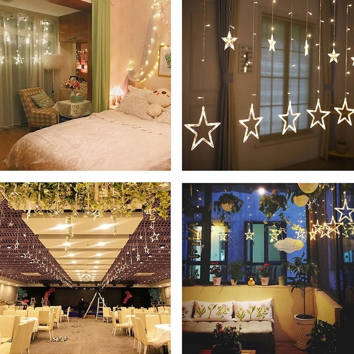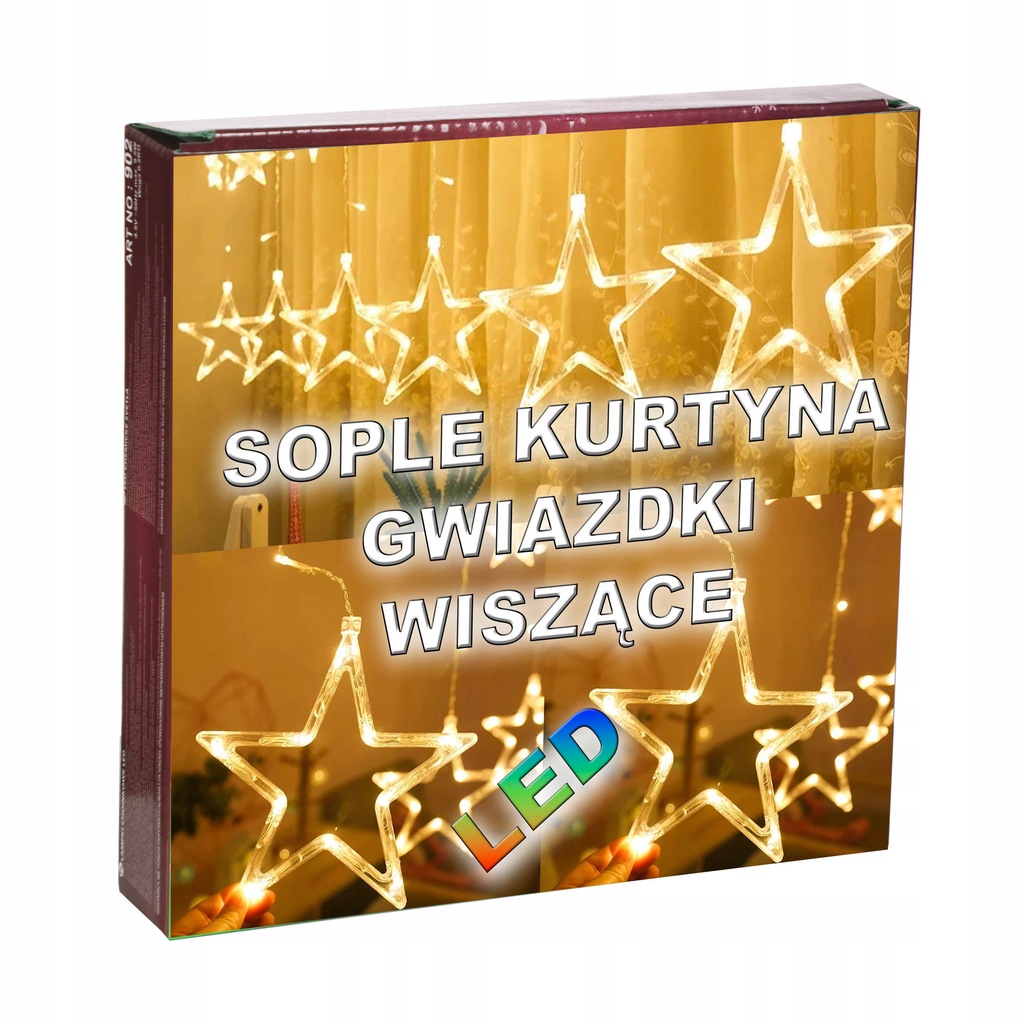 GWIAZDY WISZĄCE LAMPKI LED BARWA BIAŁA CIEPŁA MOCNA KURTYNA Z EFEKTEM FLASH