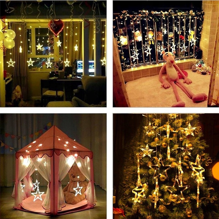 Kurtyna świetlna na naszej aukcji złożona jest z 12 gwiazdek i wielu punktów świetlnych, które dają bardzo nastrojowe światło.