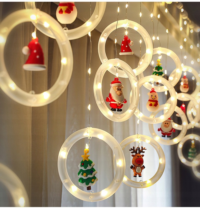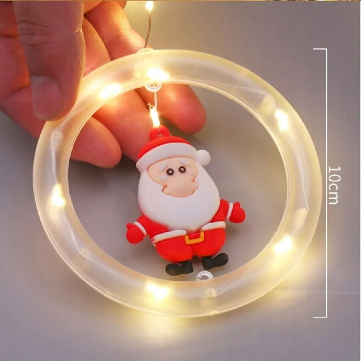 Ilość ozdób: 10 sztuk (trzy mikołaje, trzy bałwany, dwie choinki, dwa renifery)
