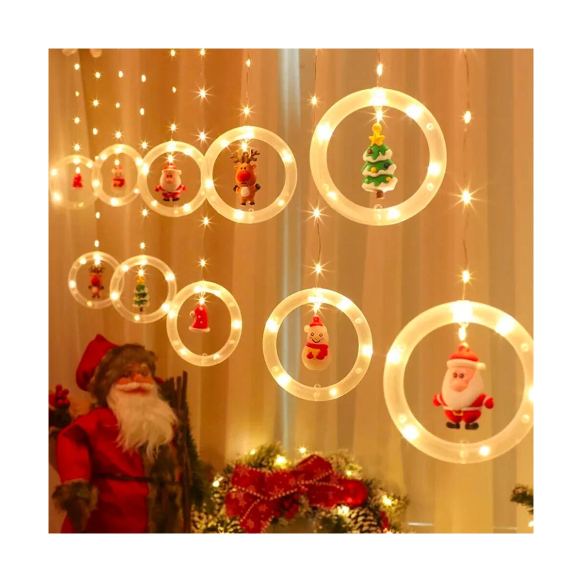 Kurtyny świetlne z figurkami zostały starannie wykonane. Stanowią ciekawą dekorację świąteczną. Można je powiesić na oknie, na ścianie lub gdziekolwiek chcemy, tak aby pięknie zdobiły wnętrze, dodając świątecznego klimatu.