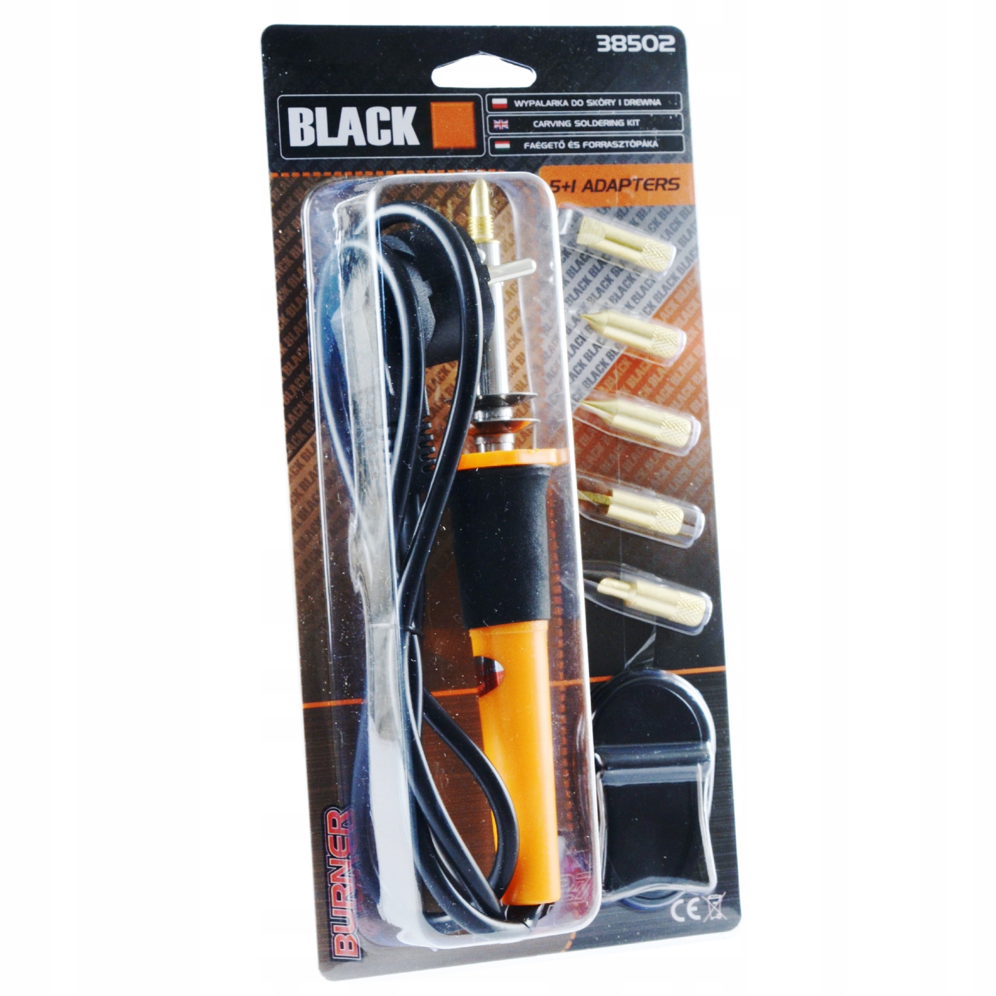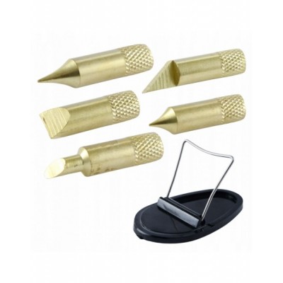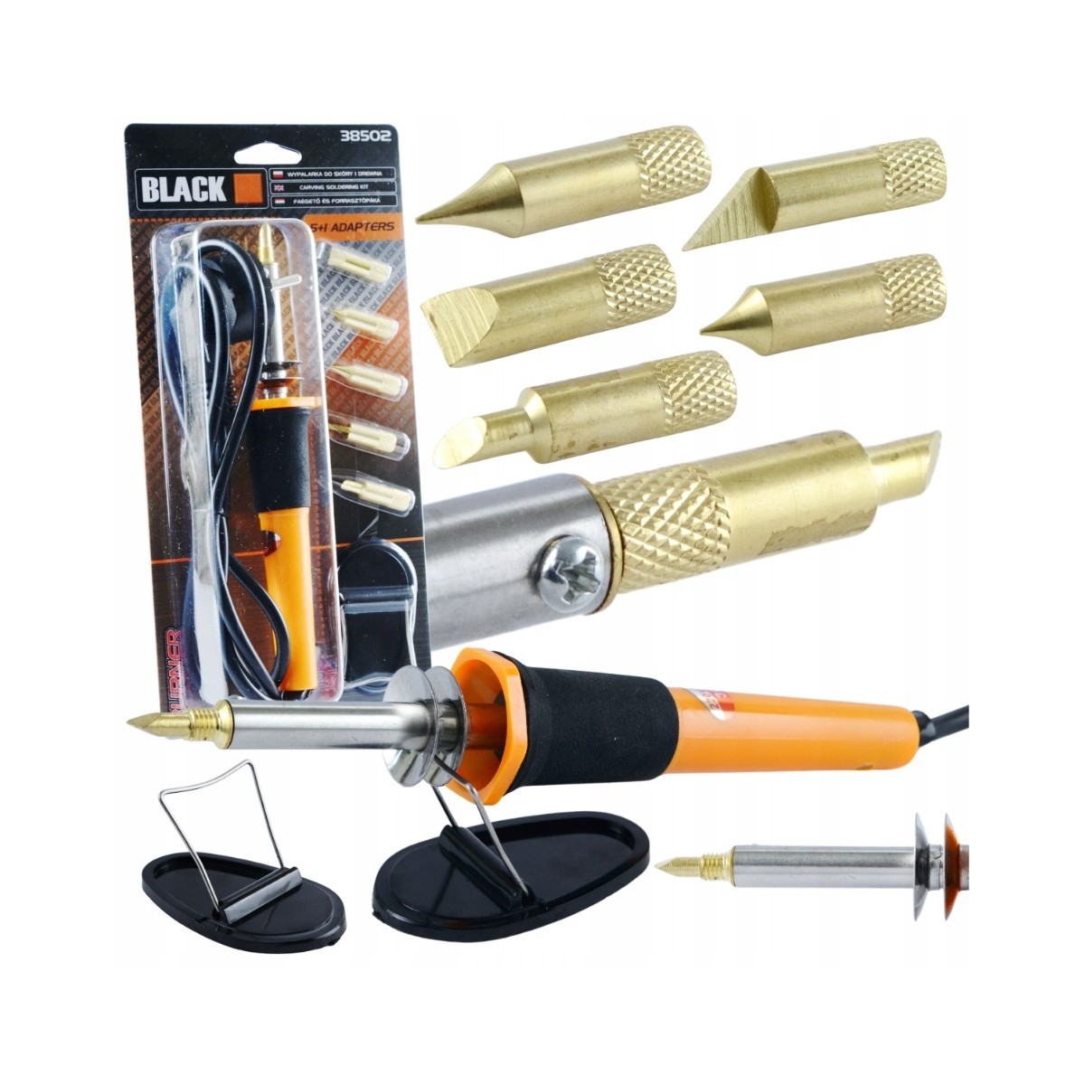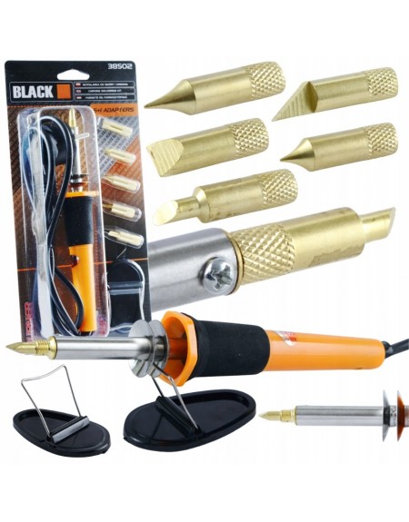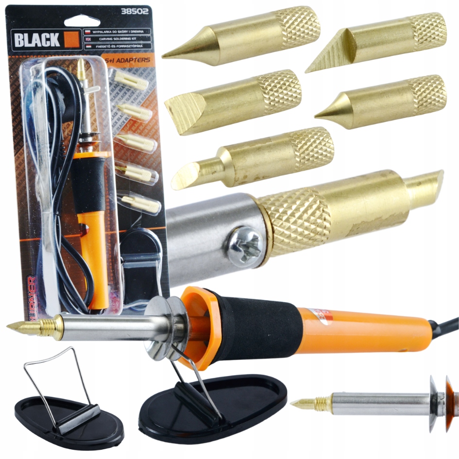 Wypalarka do dobienia przedmiotów z drewna, skóry lub korka za pomocą rozgrzanego grota. 6 adapterów pozwala na dobranie odpowiedniego kształtu do wzoru oraz materiału. Temperatura 275 stopni Celsjusza jest wystarczająca do oznaczenia lub narysowania własnych kształtów na materiałach drewnianych, skórzanych oraz korkowych.