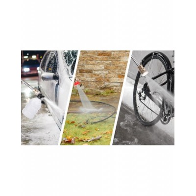Idealny do usuwania zabrudzeń z pojazdów, takich jak samochody, rowery, zewnętrzne powierzchnie domowe, schody, ogrodzenia i meble ogrodowe.