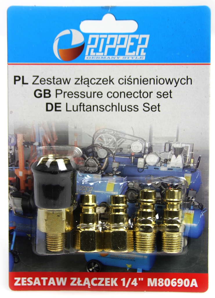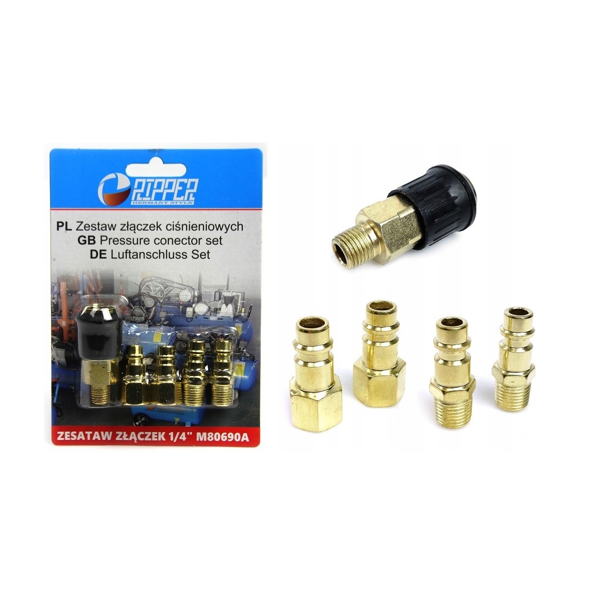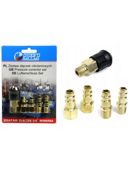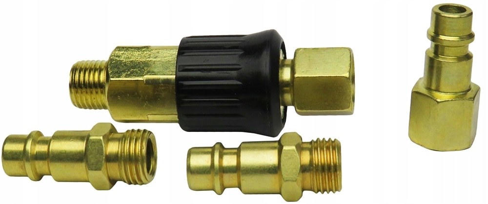 Zestaw zawiera 2 sztuki szybkozłącza wkręcanego oraz 2 złącza męskie które można zastosować przy urządzeniach które mają mieć dostęp do kompresora.
