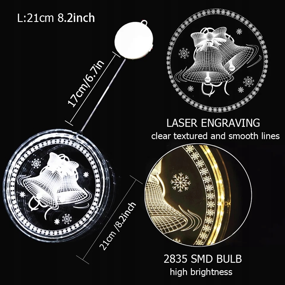 PIĘKNY WISZĄCY WITRAŻ ŚWIĄTECZNY DWUSTRONNY  3D NA BATERIE 21CM