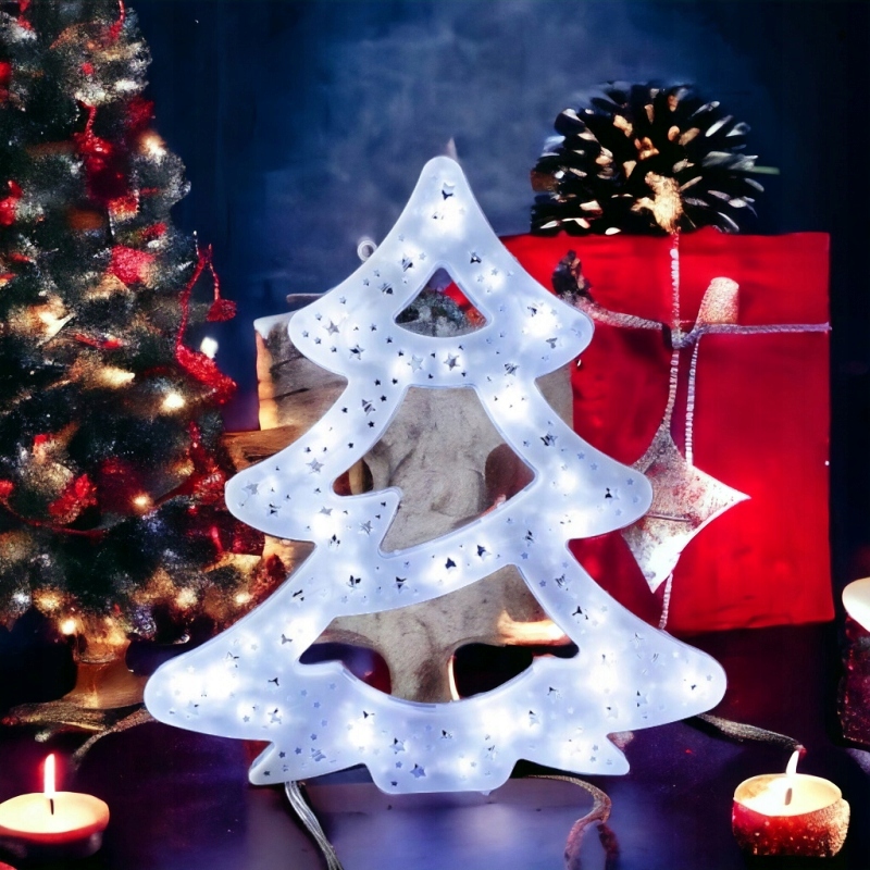 OZDOBA LED ŚWIECĄCA CHOINKA PROGRAMATOR OKNO BIAŁA ZIMNA