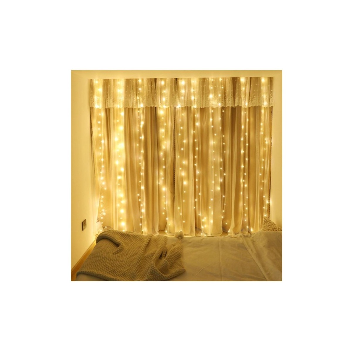 KURTYNA ŚWIETLNA 300 LED GIRLANDA LAMPKI 3x3m USB BIAŁA CIEPŁA + pilot