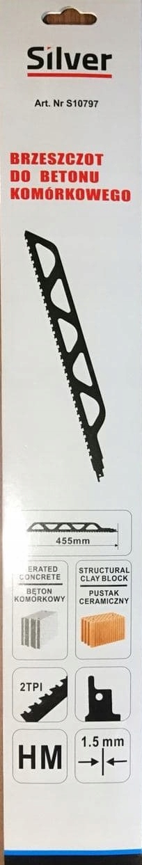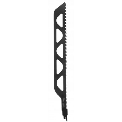 Brzeszczot do piły szablastej przeznaczony do cięcia cegły, betonu komórkowego, płyt gipsowo-kartonowych, cegieł wapienno-piaskowych, pustaków ceramicznych itp. Umożliwia przecinanie pustaków o szerokości 240–365 mm z zachowaniem równych spoin, bez konieczności czasochłonnego i nieprecyzyjnego cięcia szlifierką.