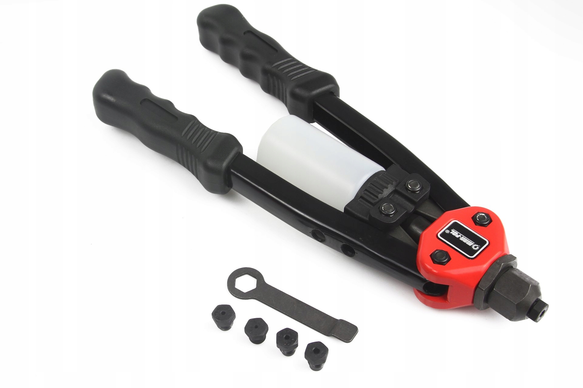 - 5 wymiennych końcówek pod nity: 2,4mm(3/32"); 3,2mm(1/8"); 4,0mm(5/32"); 4,8mm(3/16"); 6,4mm(1/4")