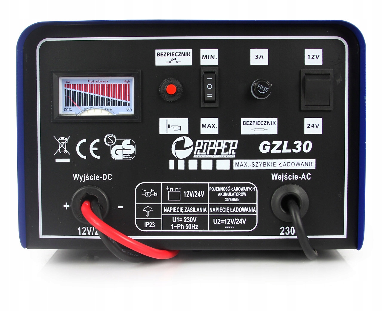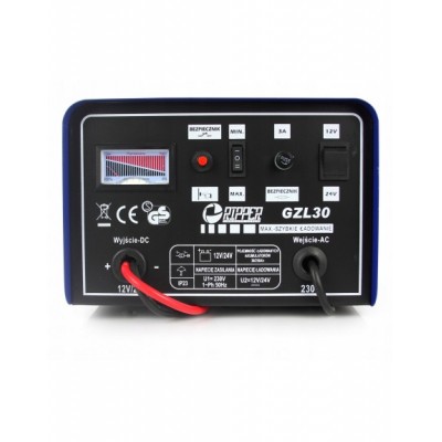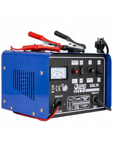 Prostownik GZL-30 z funkcją szybkiego ładowania to profesjonalne urządzenie do ładowania akumulatorów ołowiowo-kwasowych o napięciu 12 V; 24 V i pojemności akumulatorów od 7 Ah do 180 Ah.
