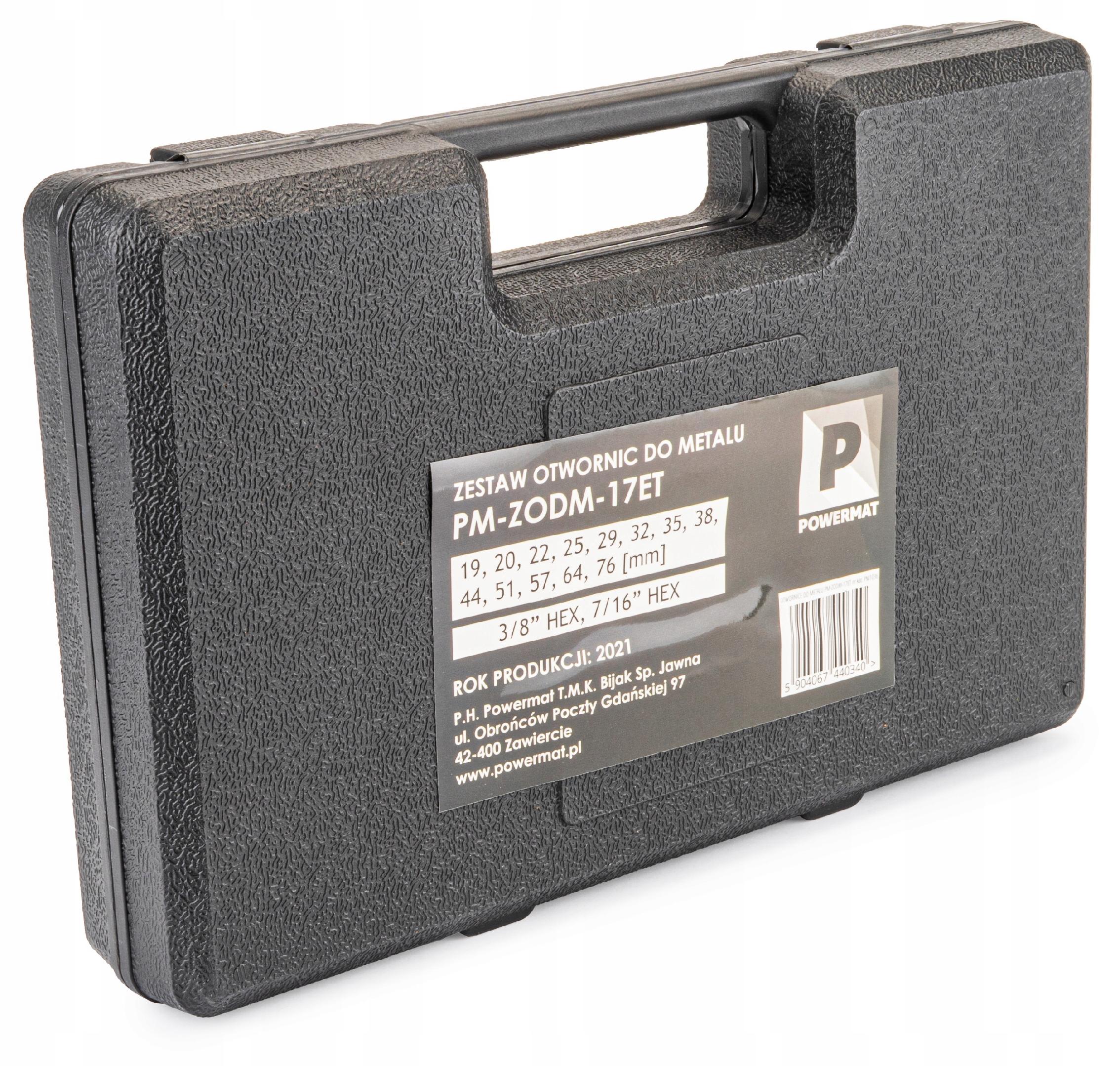 13 sztuk otwornic: 19, 20, 22, 25, 29, 32, 35, 38, 44, 51, 57, 64, 76 mm