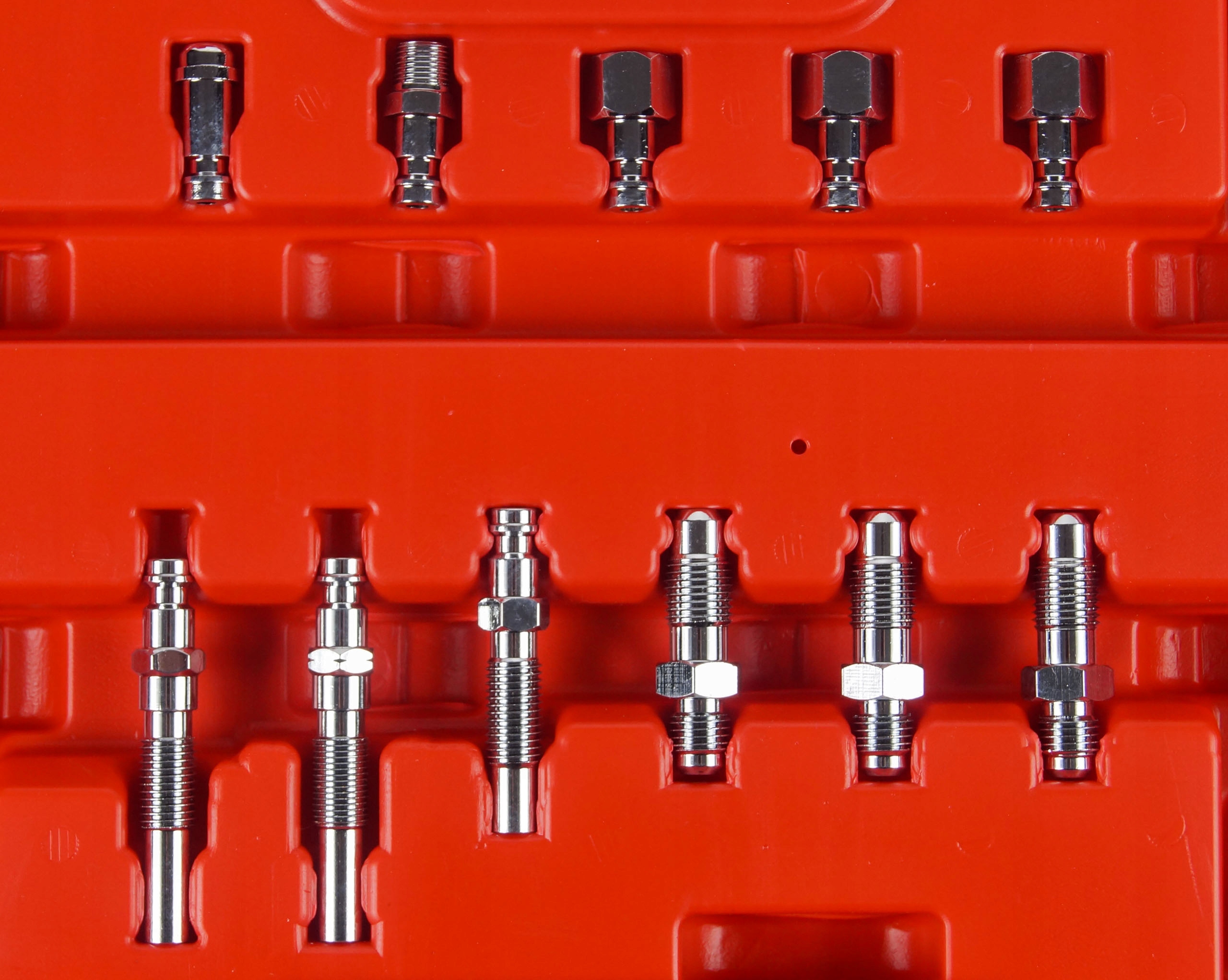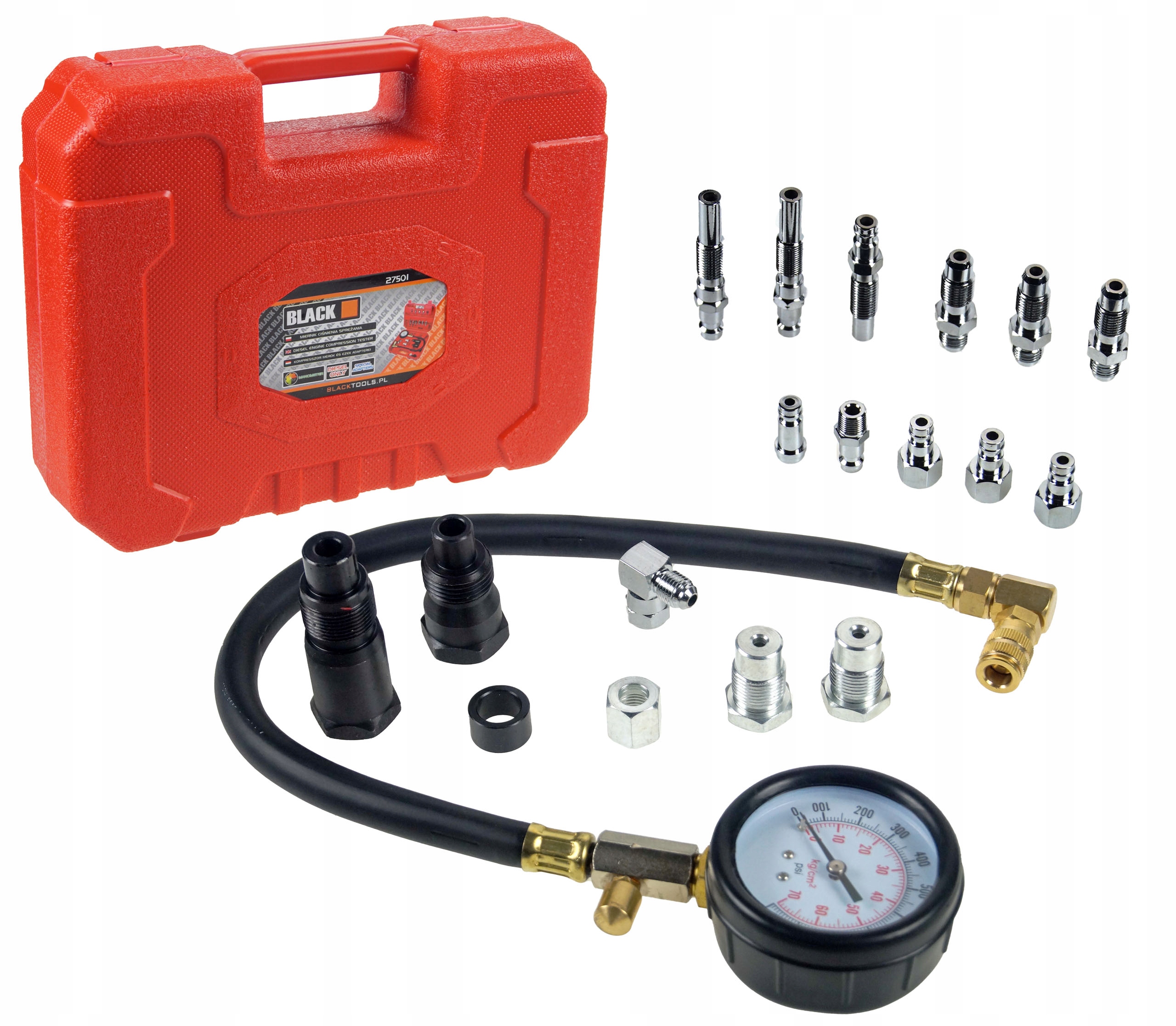 Profesjonalny zestaw pomiaru ciśnienia sprężania w cylindrach silników wysokoprężnych (diesel). Pomiaru można dokonać zarówno przez świece żarowe jak i przez wtryskiwacz.Pasuje do większości marek samochodów osobowych, dostawczych i ciężarowych,w tym do aut z silnikami tdi/hdi/sdi/dti/jtd/did z wtryskiem bezpośrednim i pośrednim. Zestaw zawiera wiele adapterów, pasuje do większości marek samochodów: