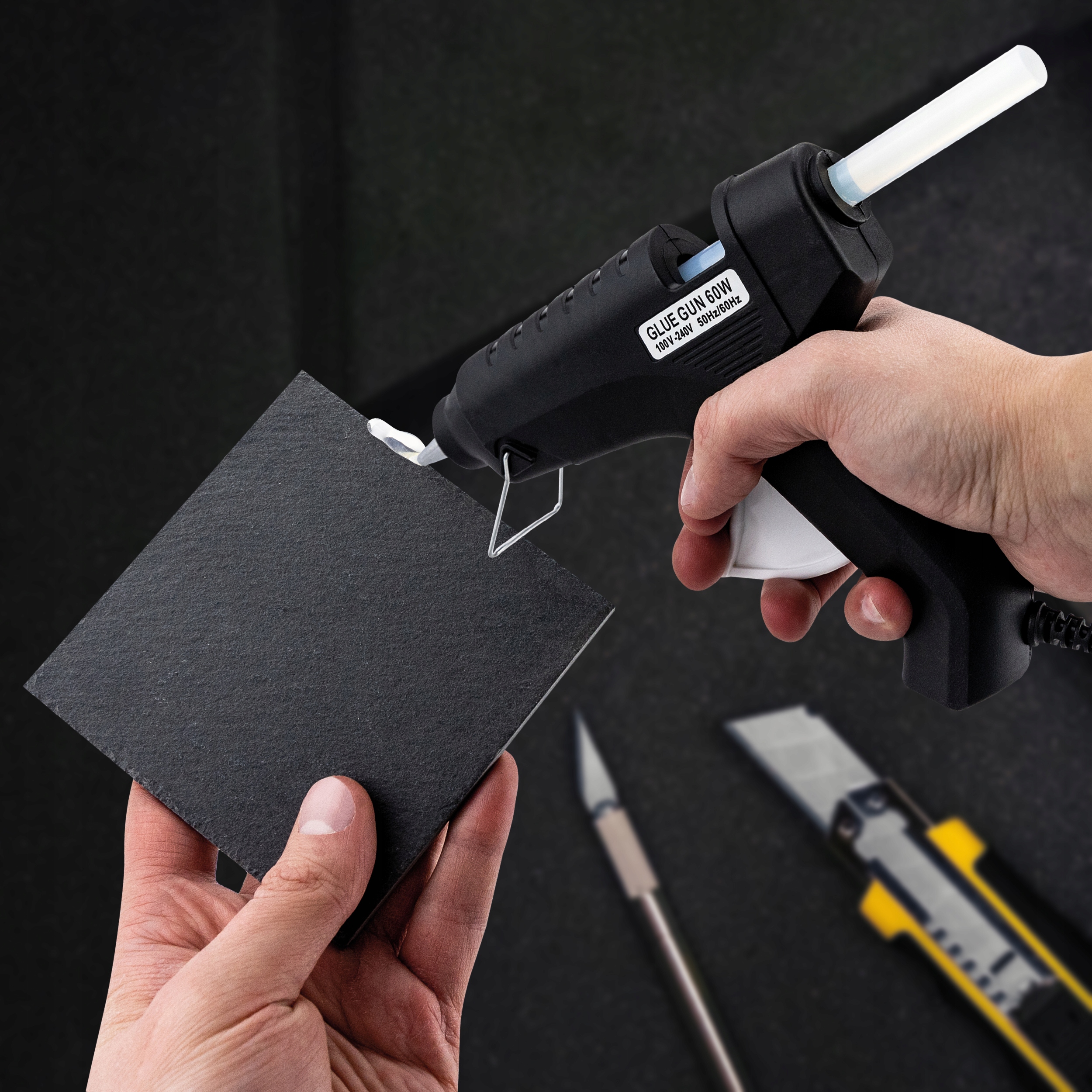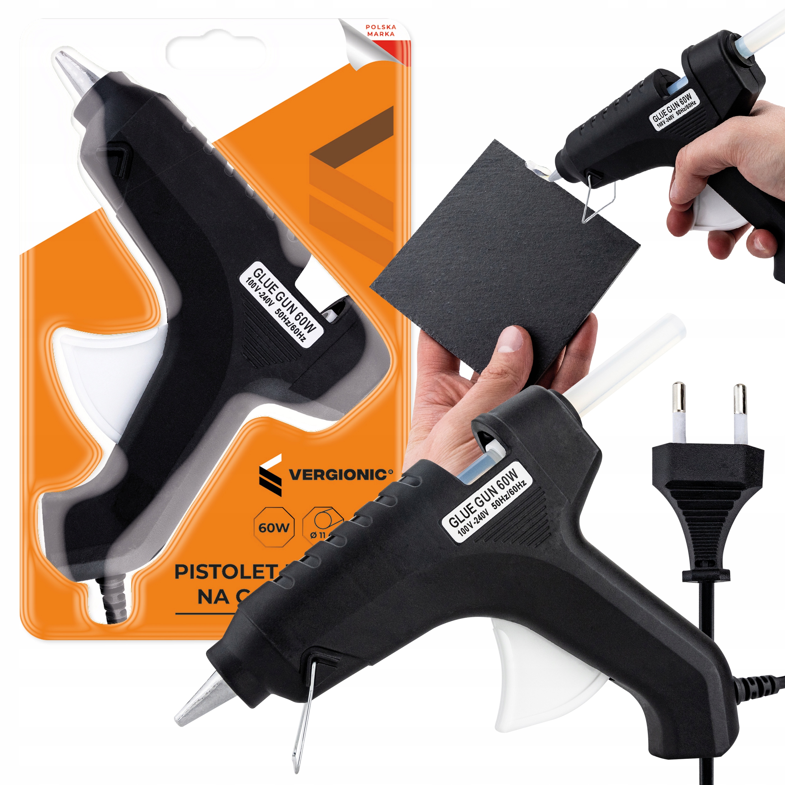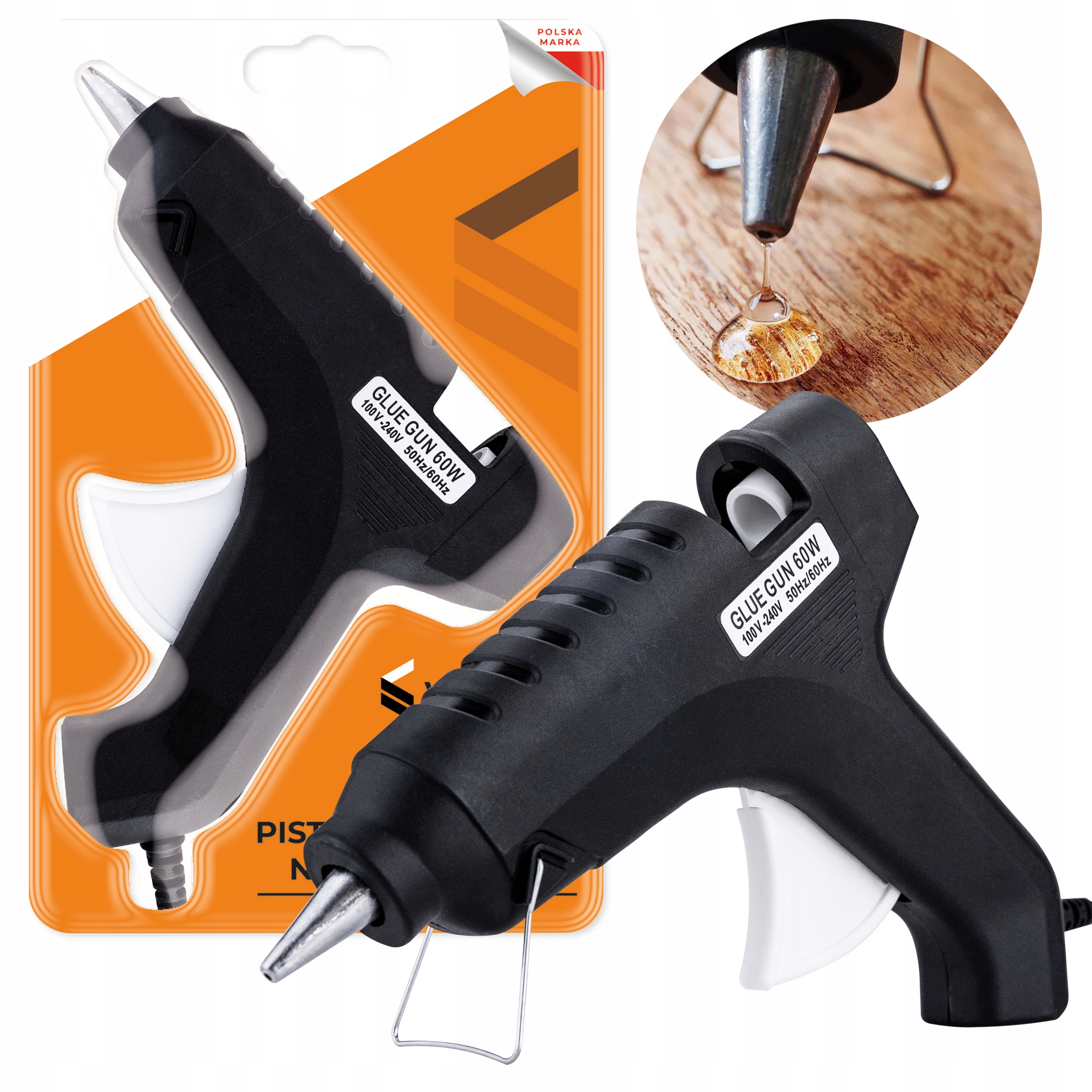 Dzięki pistoletowi z łatwością można połączyć ze sobą różne materiały jak np. papier, karton, plastik, drewno lub metal (po wcześniejszym nagrzaniu metalu). Po wyschnięciu kleju materiały będą trwale ze sobą połączone i zabezpieczone przed kolejnym uszkodzeniem. Pistolet jest wykorzystywany nie tylko do drobnych napraw, ale również do różnego rodzaju hobby np. modelarstwo, decoupage, florystyka, dekoracja wnętrz. Pistolet charakteryzuje się wysoką mocą – 60W i współpracuje z klejem o średnicy 11 mm. Dzięki temu narzędzie gwarantuje szybkie rozgrzanie i gotowość do pracy w zaledwie kilka chwil. Pistolet jest wyposażony w ergonomiczny uchwyt, dzięki czemu jego obsługa jest wygodna i bezproblemowa. Jego Dzięki szpiczastej, funkcjonalnej dyszy o otworze 1,5 mm, klej można zaaplikować bardzo precyzyjnie i dotrzeć do ciężko dostępnych miejsc. Pistolet jest lekki, a do jego użycia wystarczy jedna ręka. Podłączany do zasilania sieciowego. Wyposażony w podpórkę, która pomaga w precyzyjnej pracy.