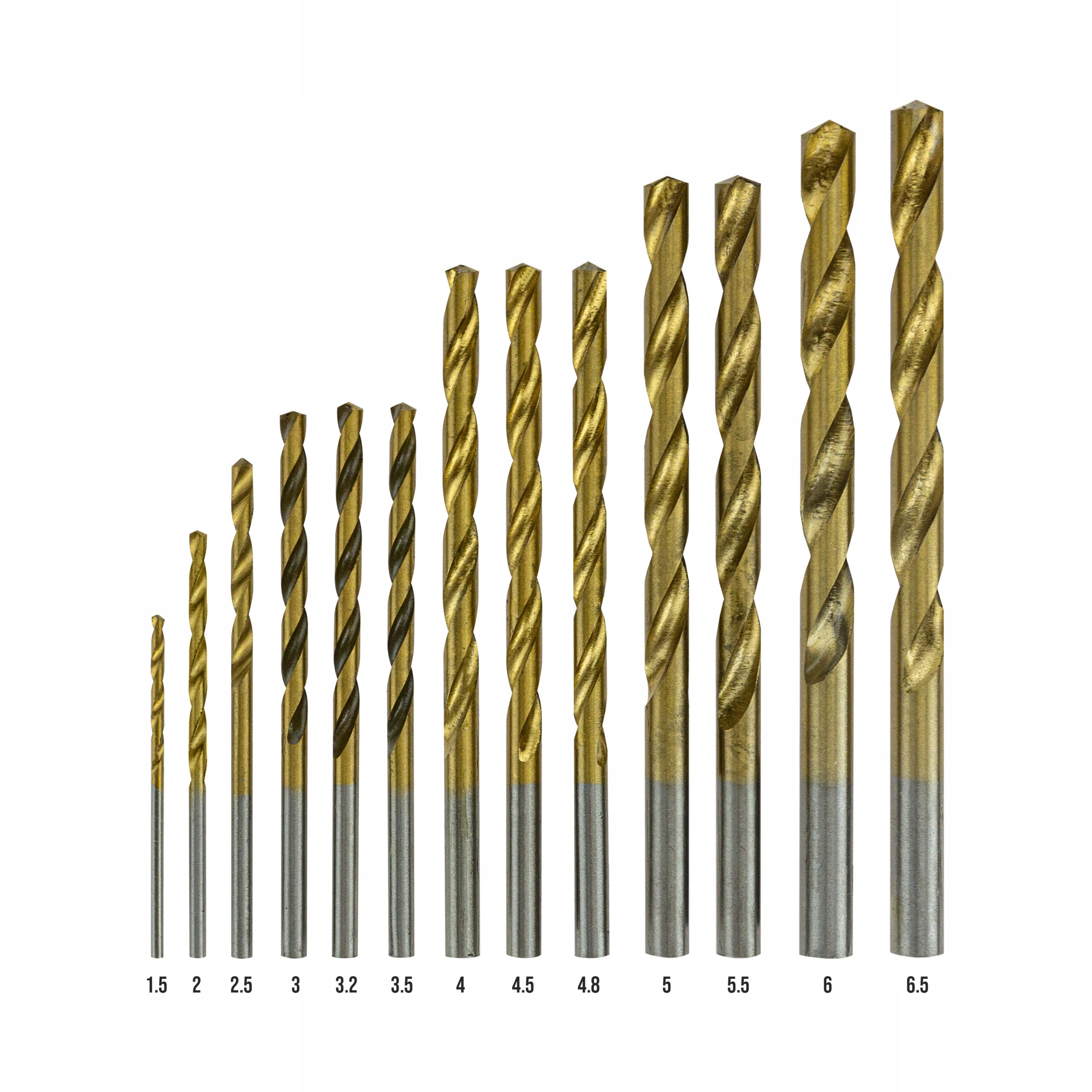 W zestawie znajduje się trzynaście wierteł wysokiej jakości o popularnych średnicach. Przydadzą się podczas montowania profesjonalnych konstrukcji oraz rzeczy użytku codziennego. Wykonane ze stali szybkotnącej HSS. Jest to stal bardzo twarda i odporna na wysokie temperatury. Wkrętaki zakończone standardowym mocowaniem kompatybilnym z większością wiertarek oraz wkrętarek dostępnych na rynku.
